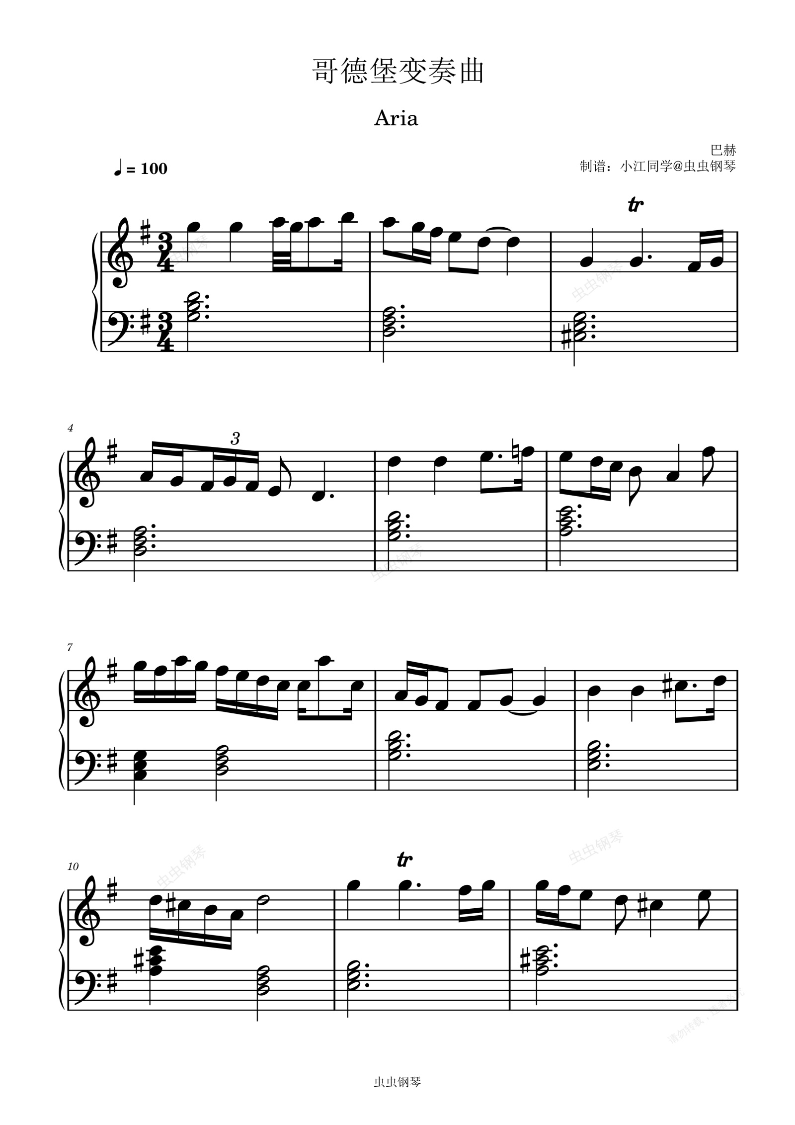 钢琴谱:哥德堡变奏曲 2级程度简单版