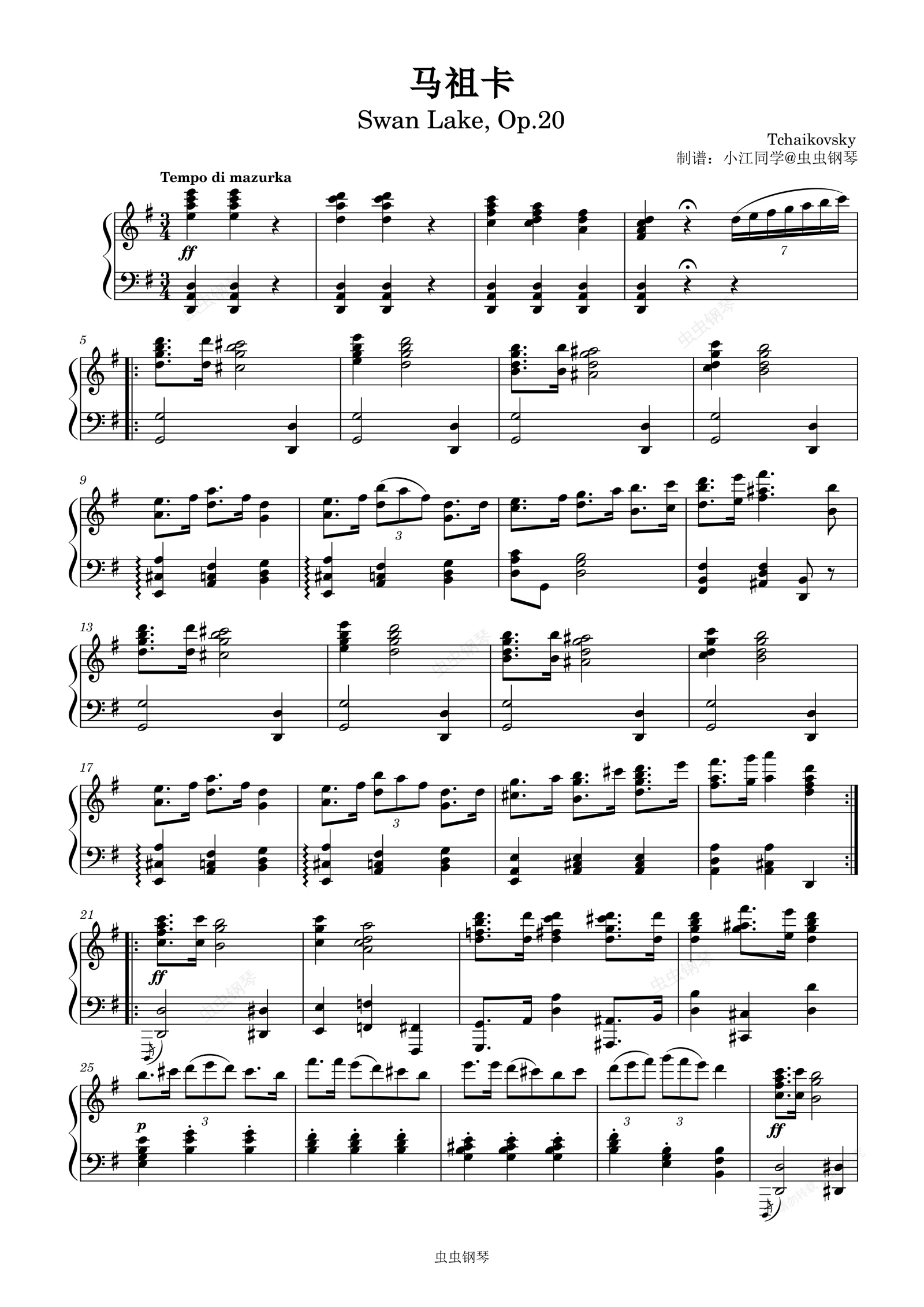钢琴谱:马祖卡 柴可夫斯基 Swan Lake, Op.20