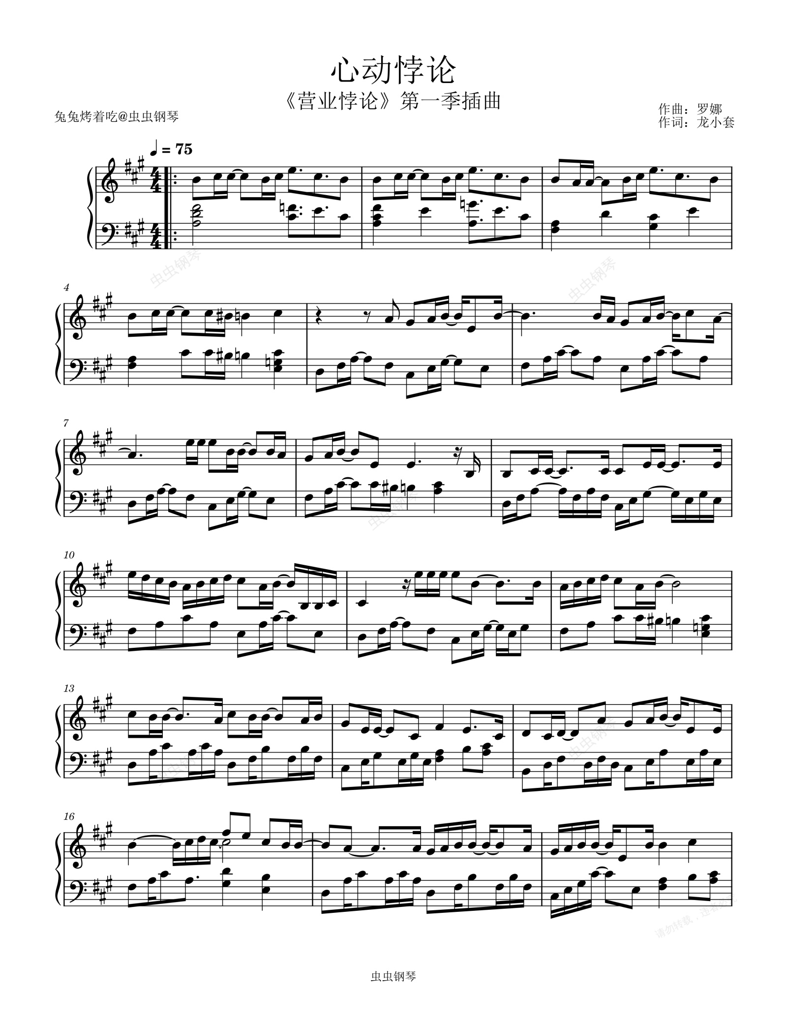 钢琴谱:《心动悖论》营业悖论第一季插曲