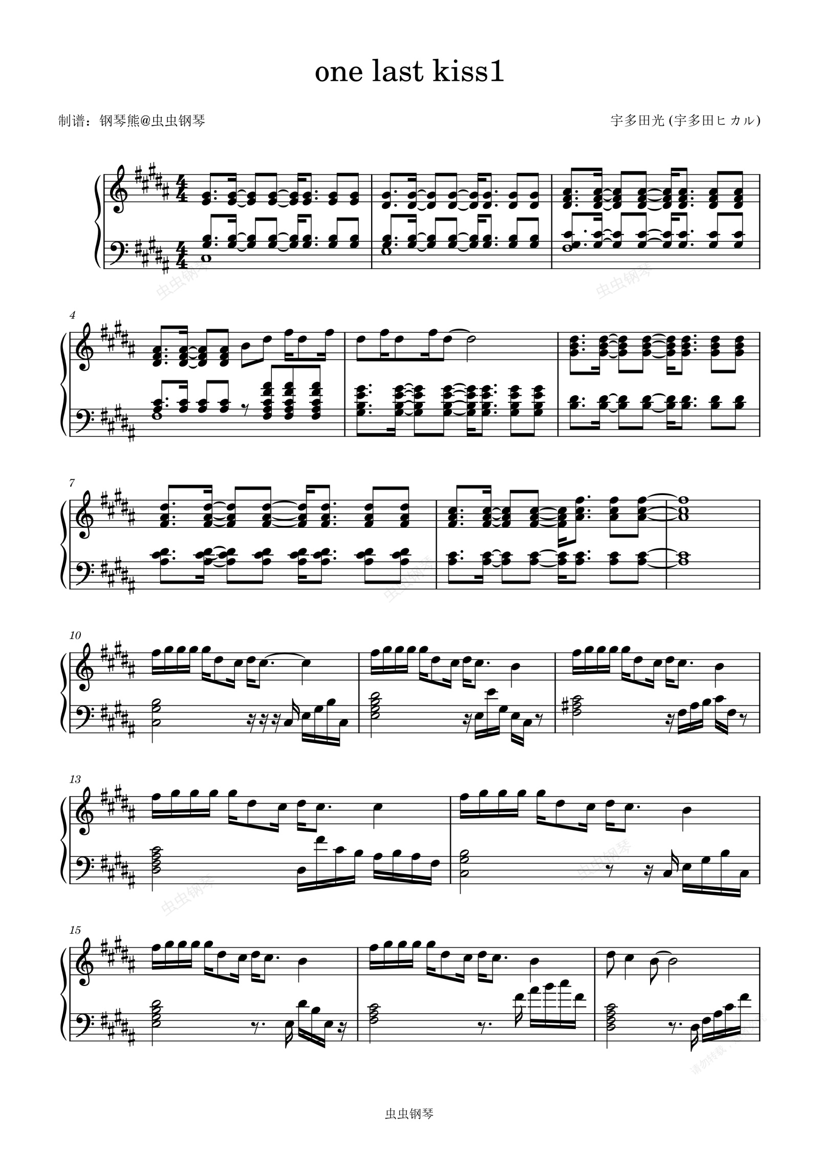 钢琴谱:one last kiss 四手联弹版 分谱一