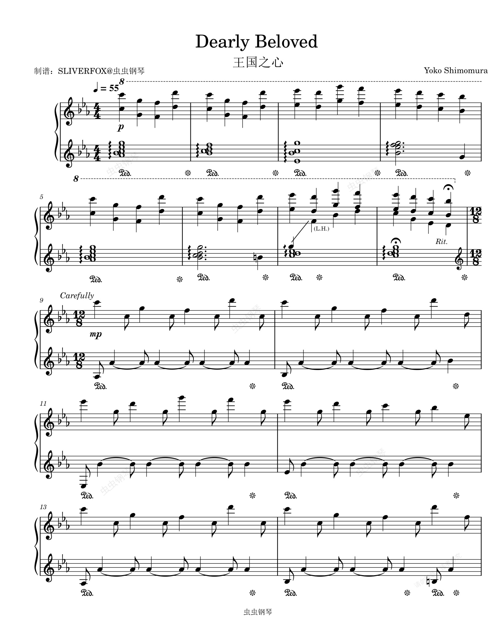 钢琴谱:《Dearly Beloved》王国之心主题曲下村阳子