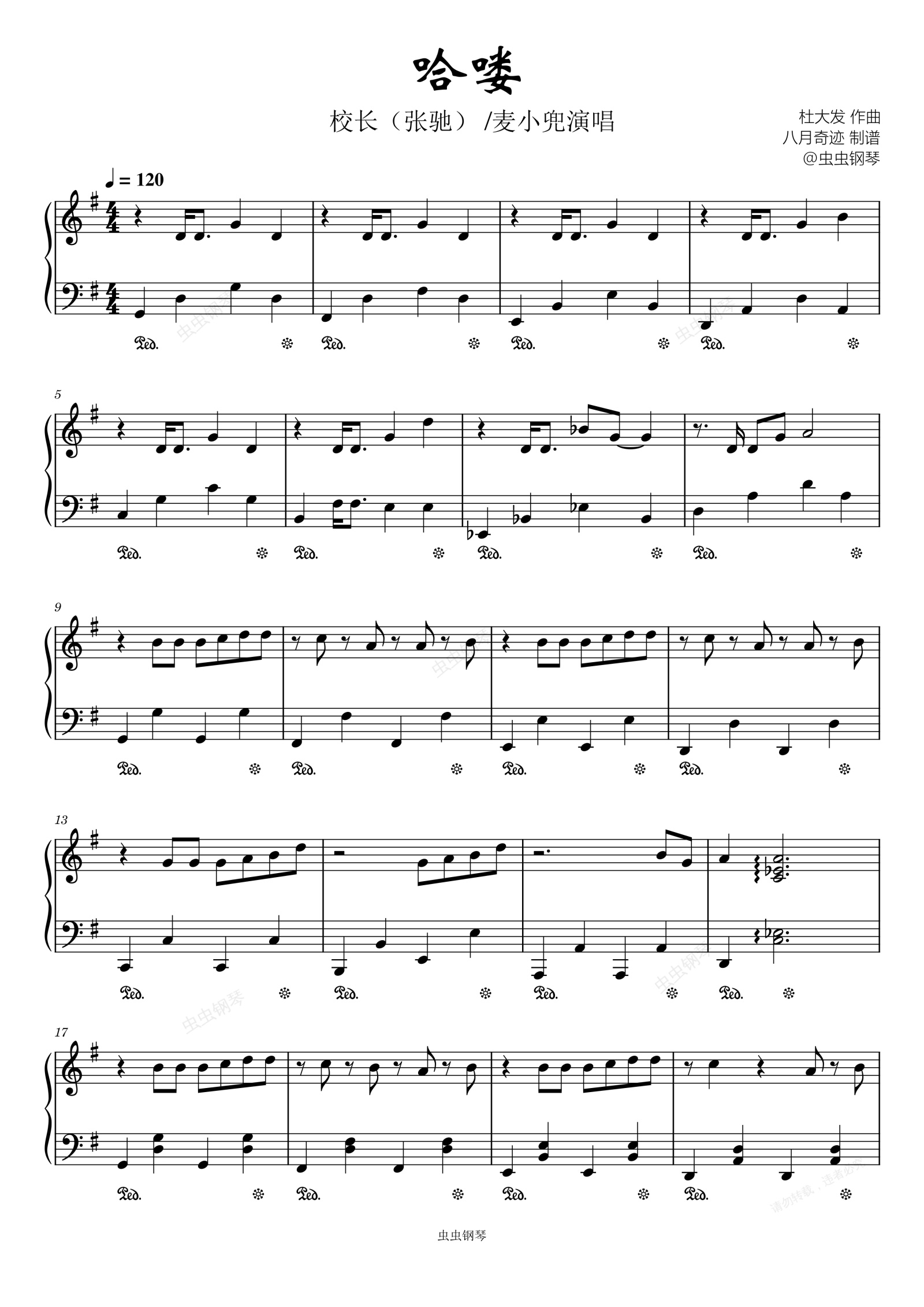 钢琴谱:小甜歌《哈喽》 校长(张驰) /麦小兜