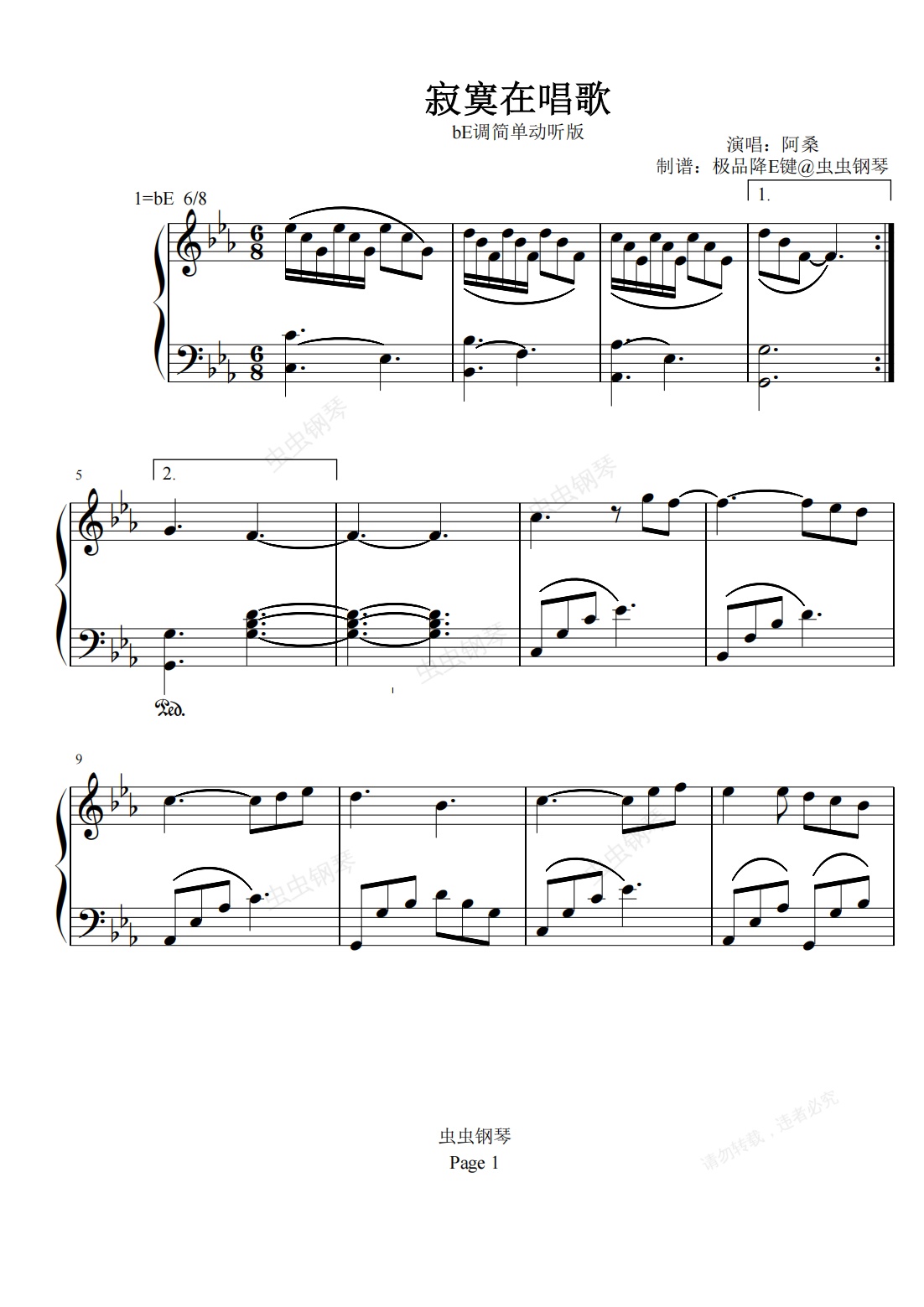 钢琴谱:寂寞在唱歌精简易弹好听版