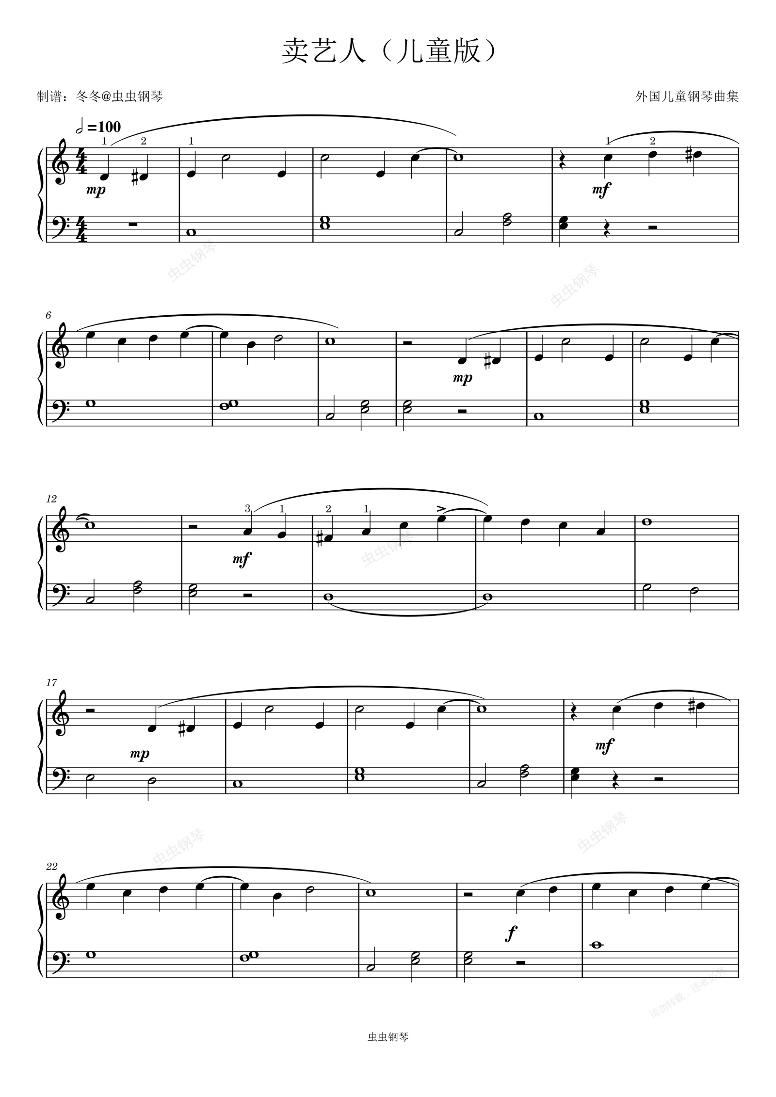 钢琴谱:卖艺人(儿童版)