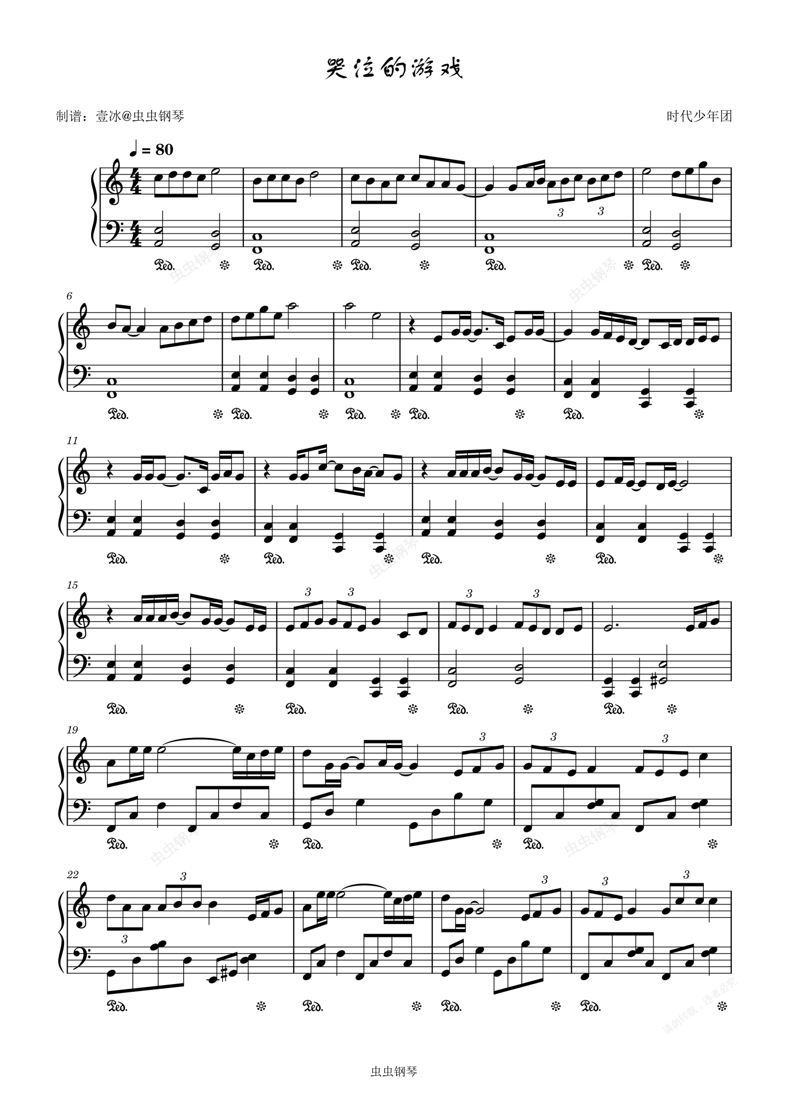 钢琴谱:哭泣的游戏//时代少年团-C调版