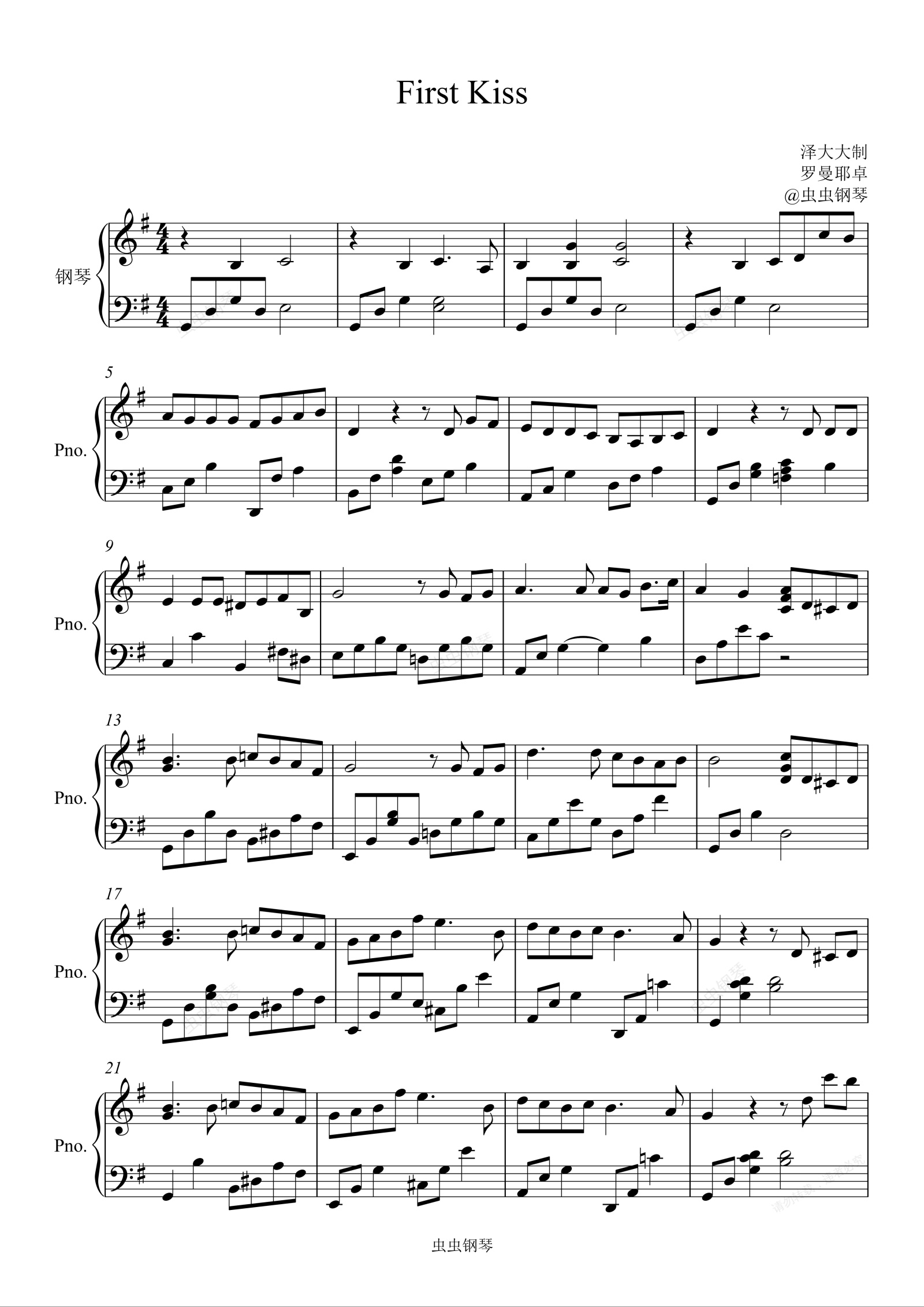 钢琴谱:First Kiss【O叔不能说的秘密】泽大大 罗曼耶卓