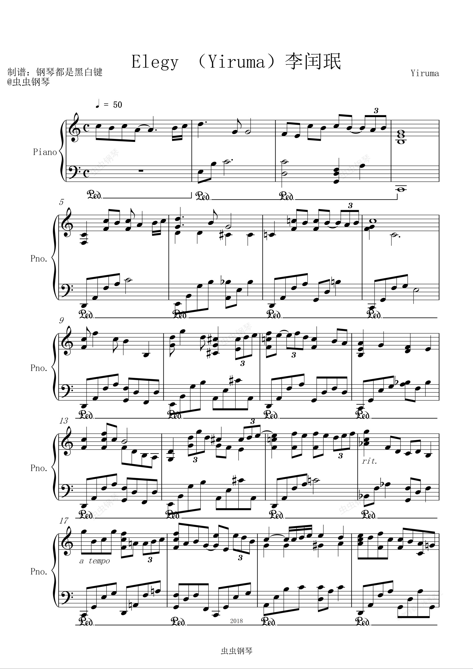 钢琴谱:Elegy (Yiruma)李闰珉 - 【治愈钢琴曲】