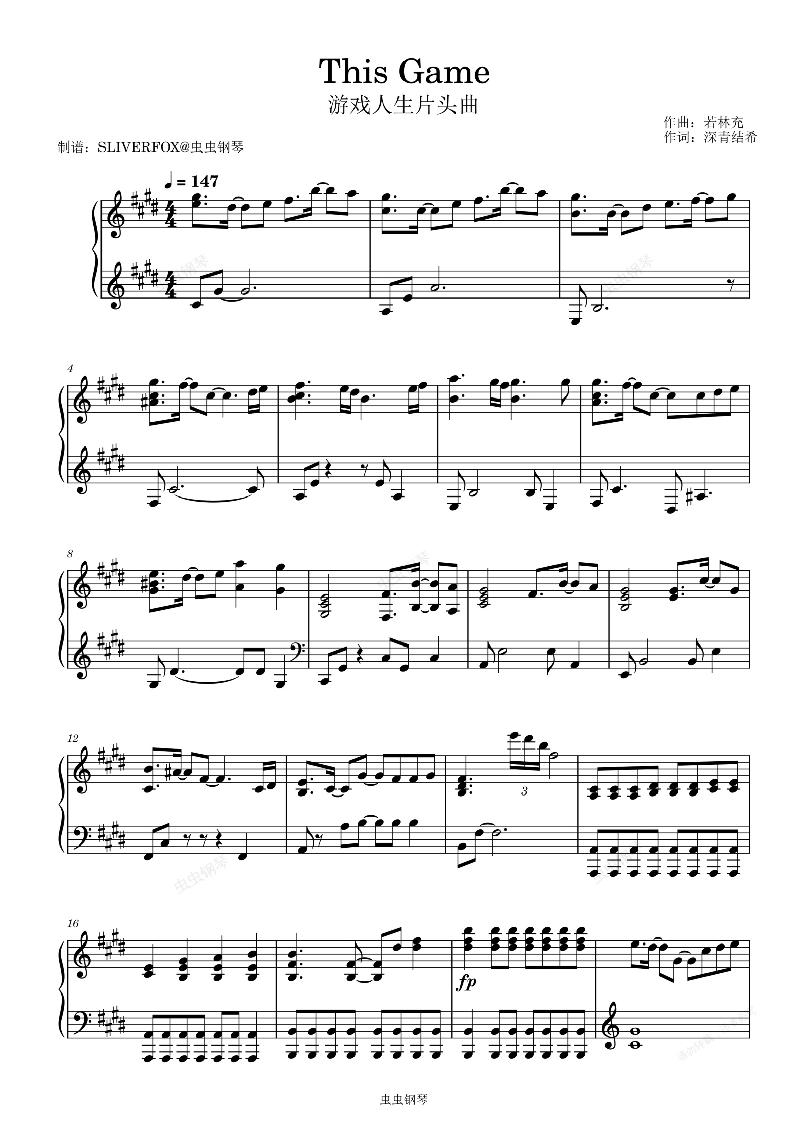 钢琴谱:《This Game》游戏人生片头曲 完整版