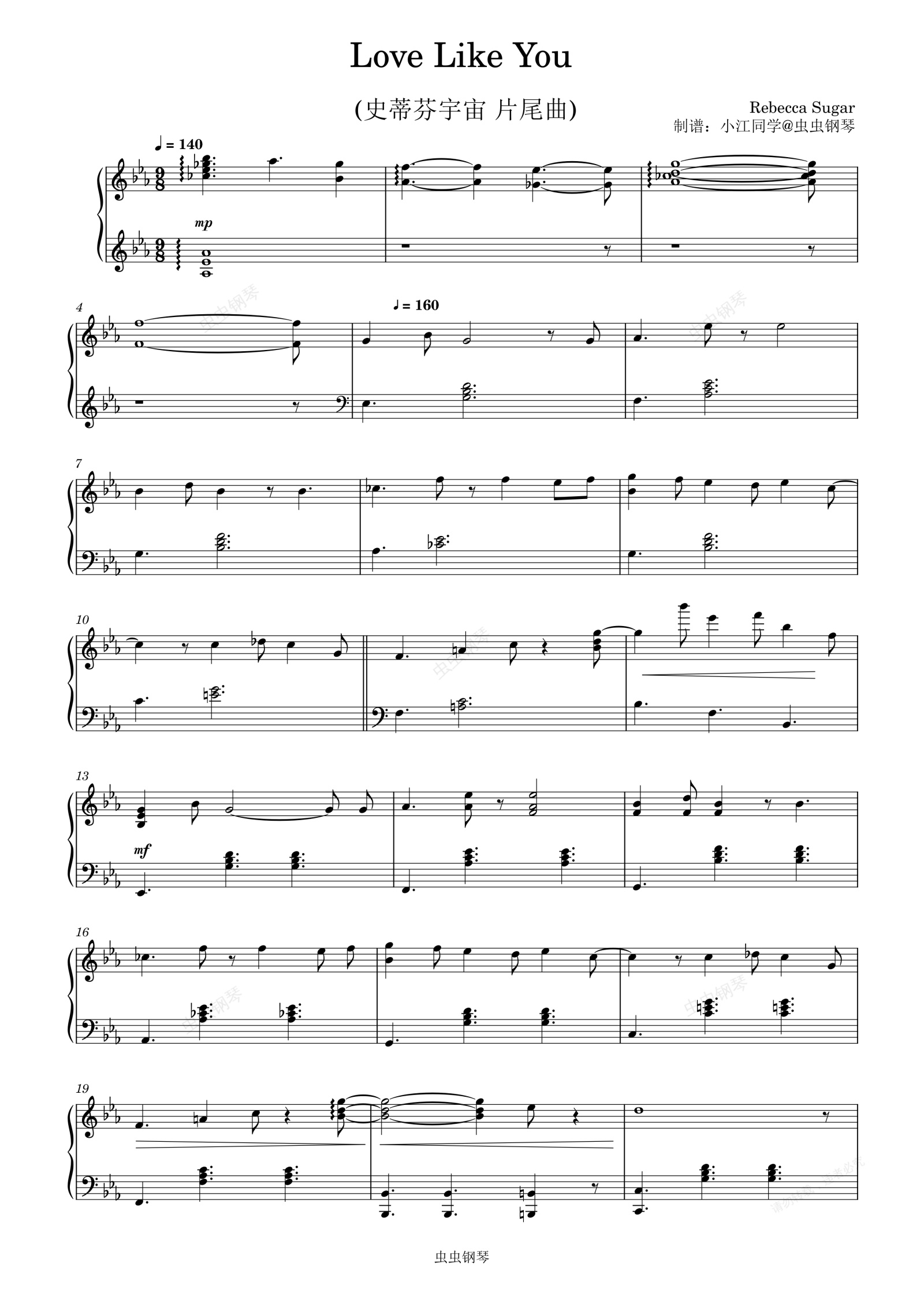 钢琴谱:Love Like You (史蒂芬宇宙 片尾曲)