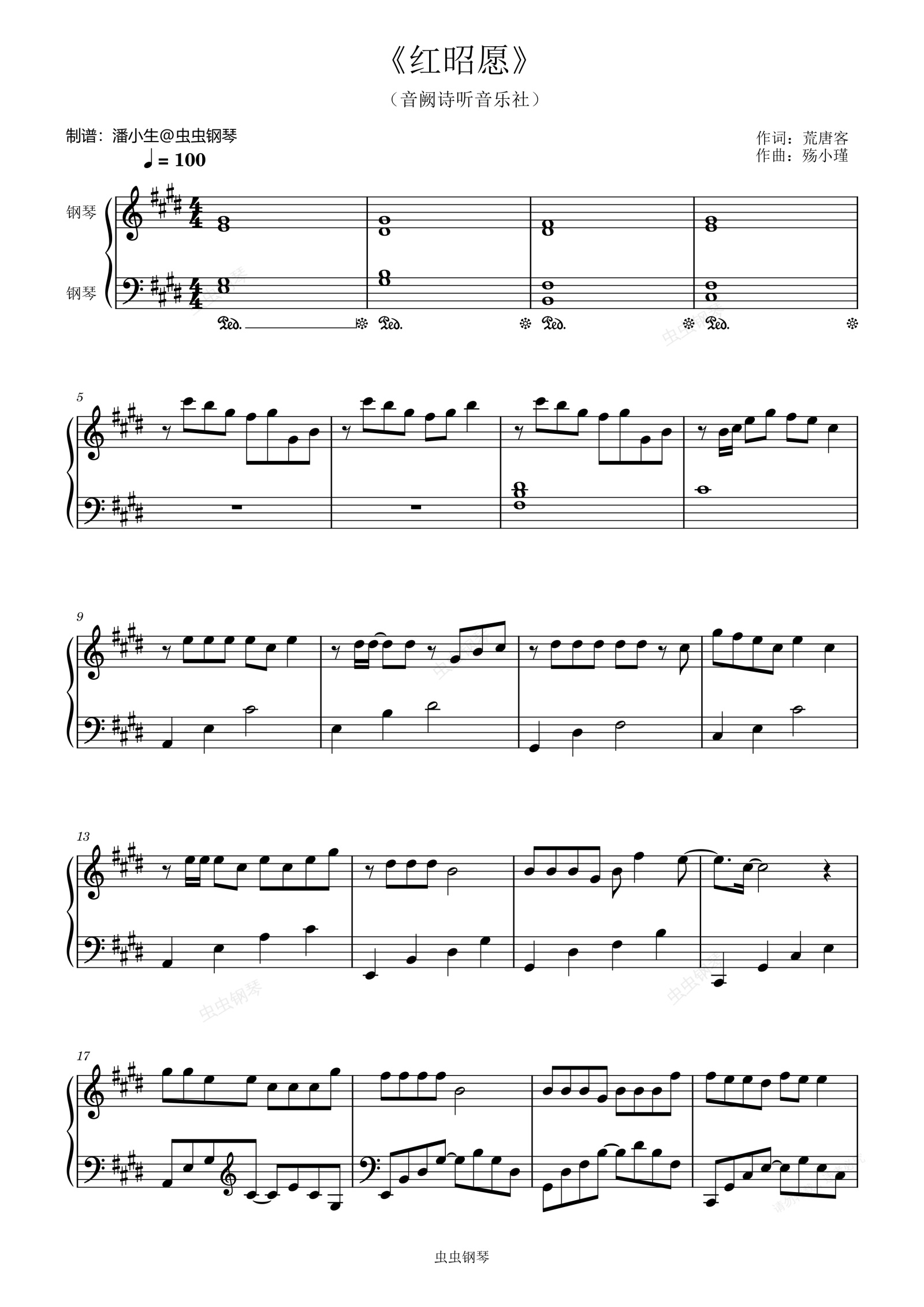 钢琴谱:红昭愿 E大调 钢琴独奏谱 音阙诗听 国风钢琴