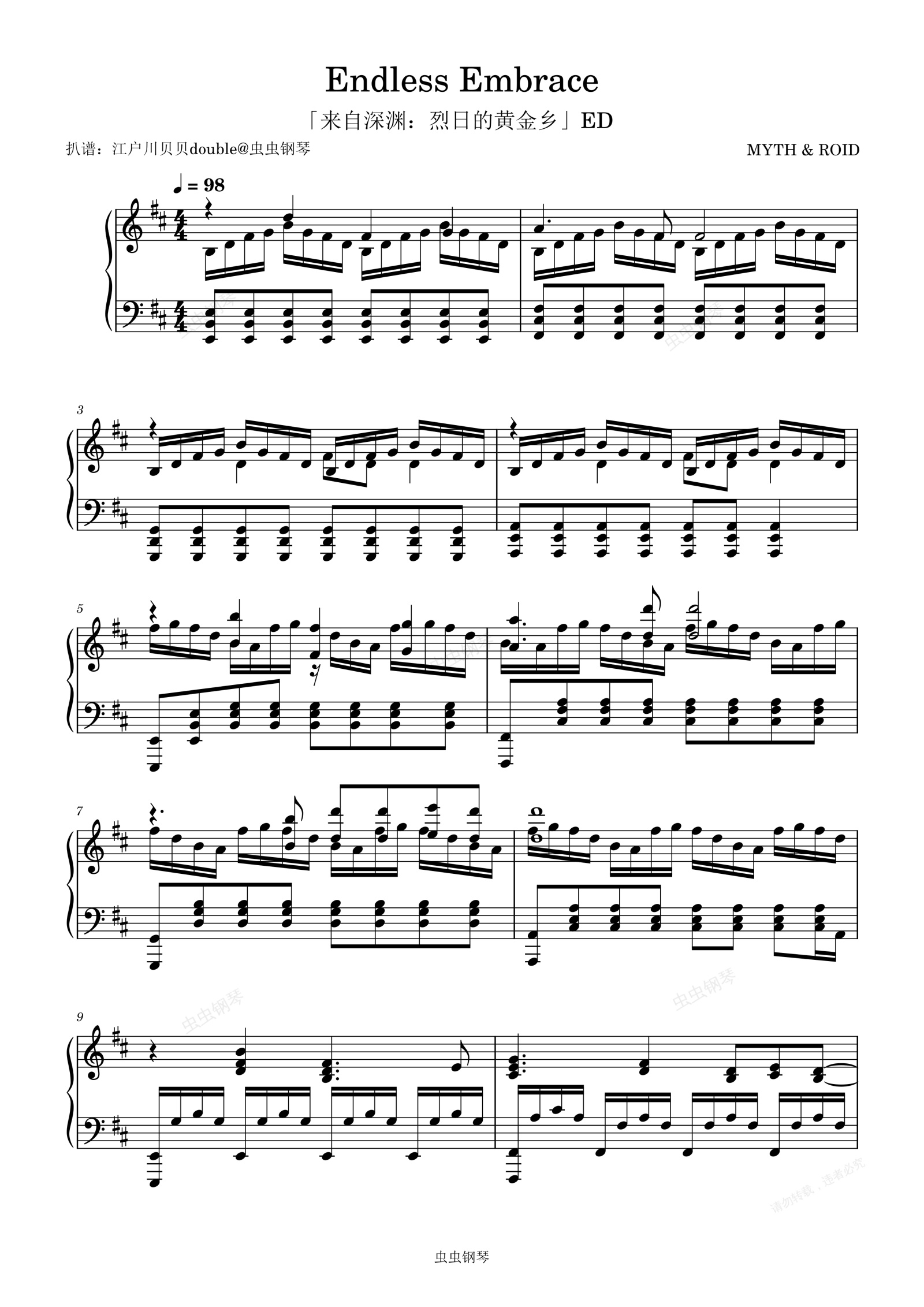 钢琴谱:【来自深渊:烈日的黄金乡】《Endless Embrace》(MYTH & ROID)