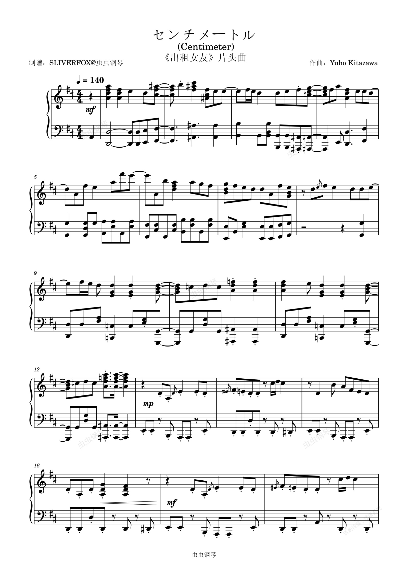 钢琴谱:《センチメートル》出租女友片头曲(Centimeter)
