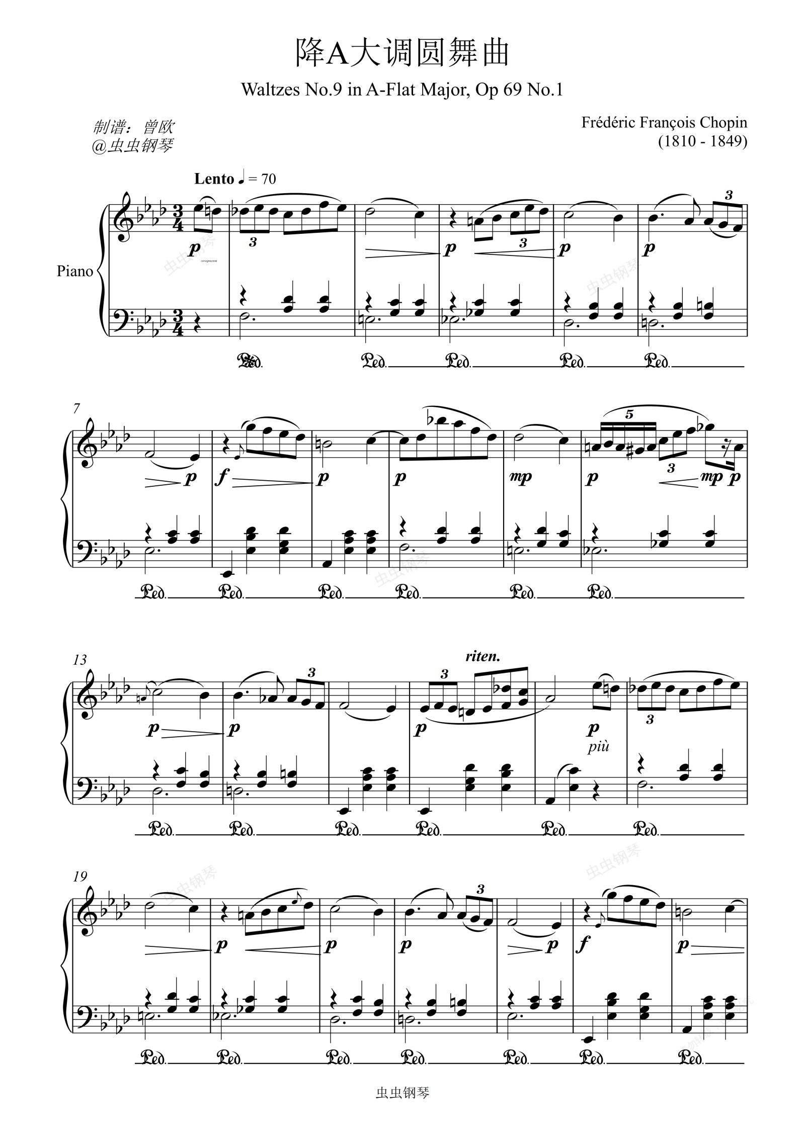 肖邦 - 降A大调圆舞曲 Waltzes No.9 in A-Flat Major, Op 69 No.1