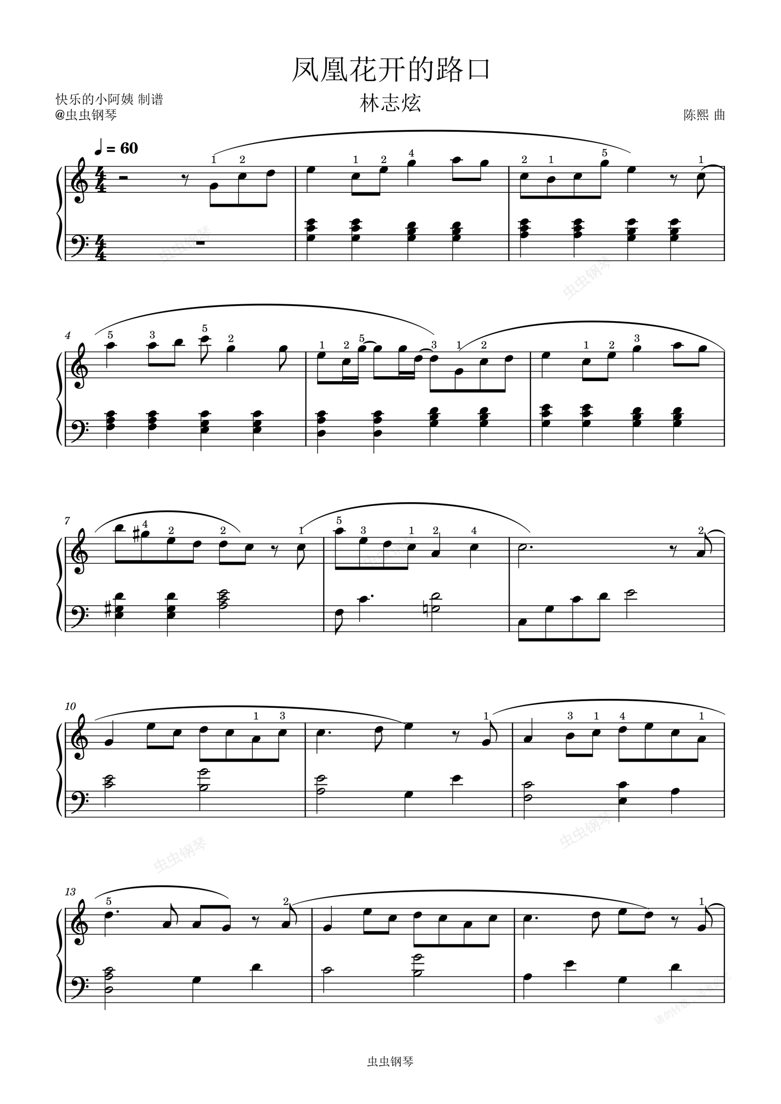 钢琴谱:凤凰花开的路口(简单版) - 林志炫