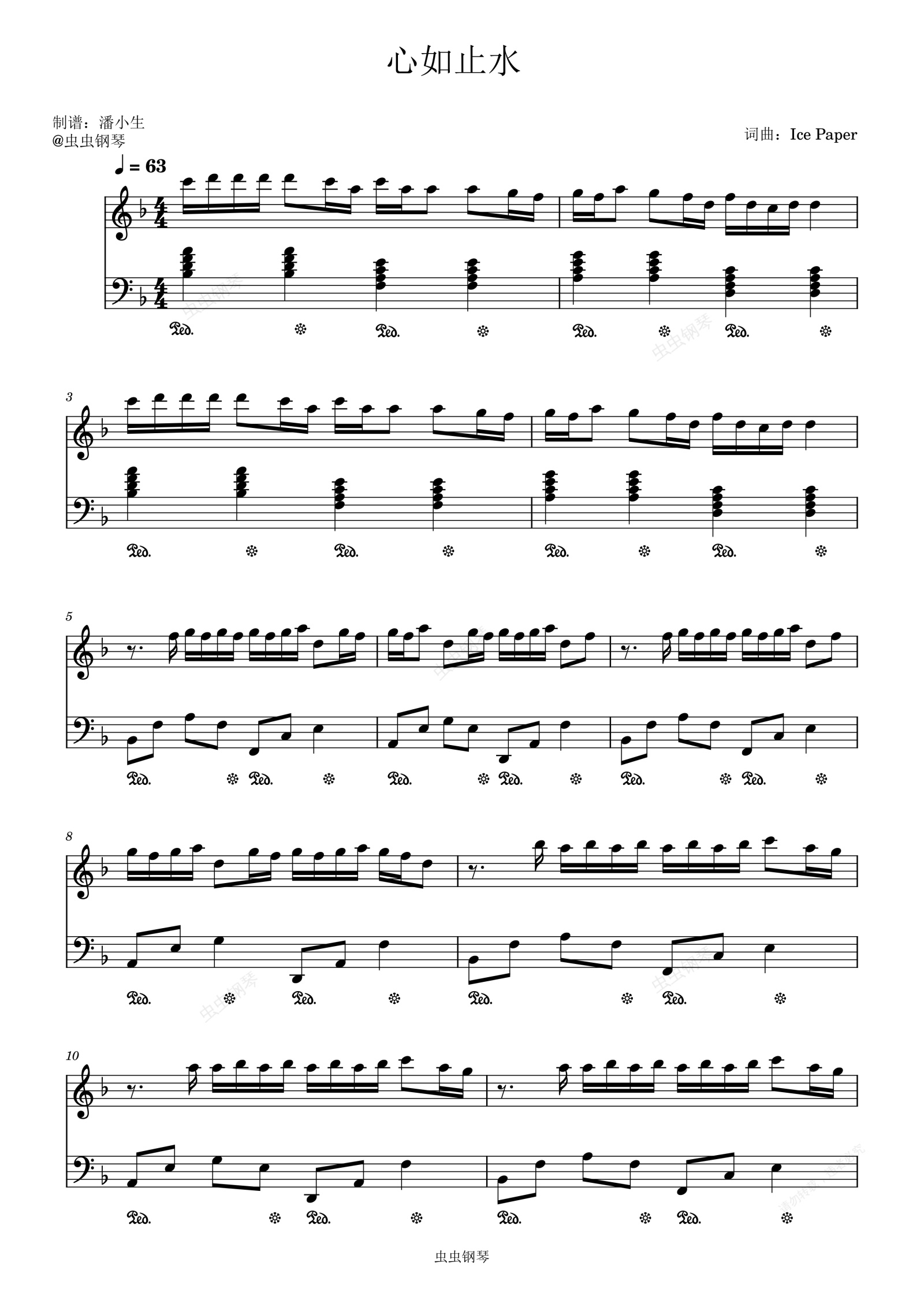 钢琴谱:心如止水 F调 Ice Paper 抖音热歌 钢琴独奏谱