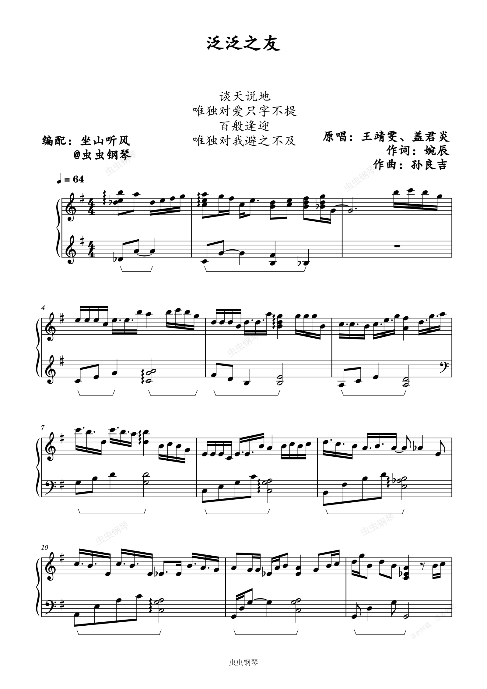 钢琴谱:泛泛之友——王靖雯、盖君炎版