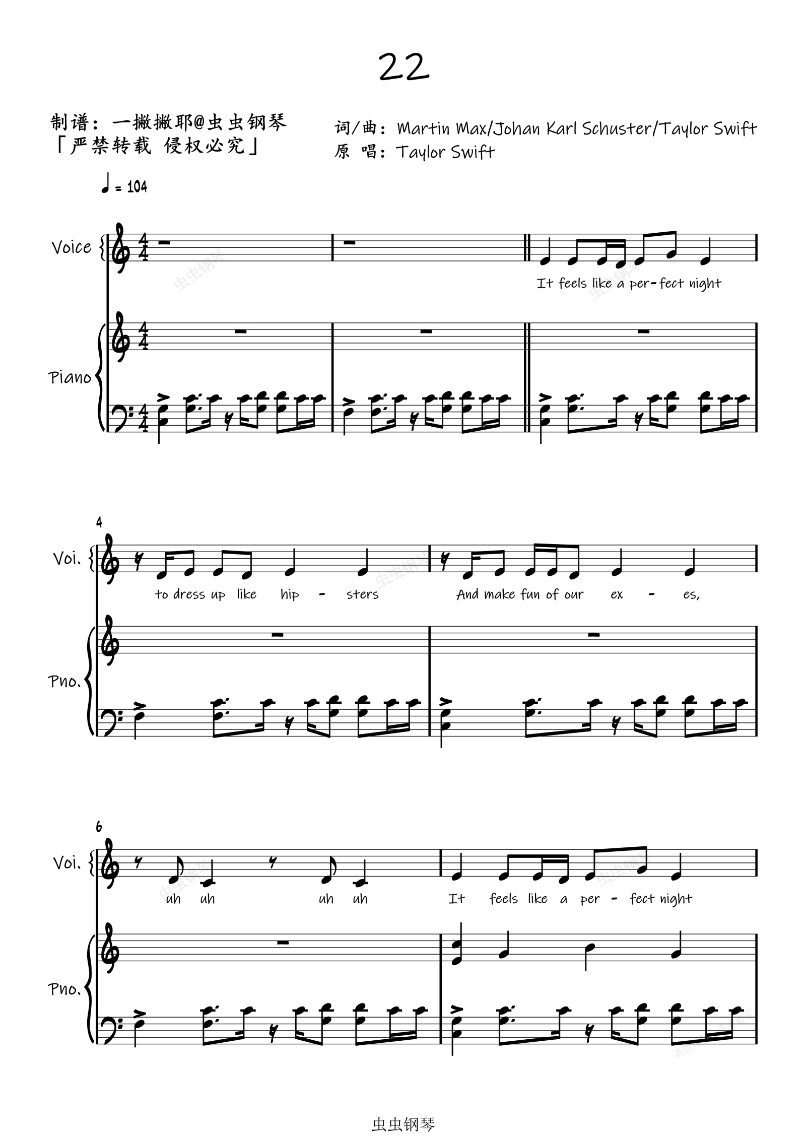 钢琴谱:22【C调男版弹唱】Taylor Swift「一撇撇耶」