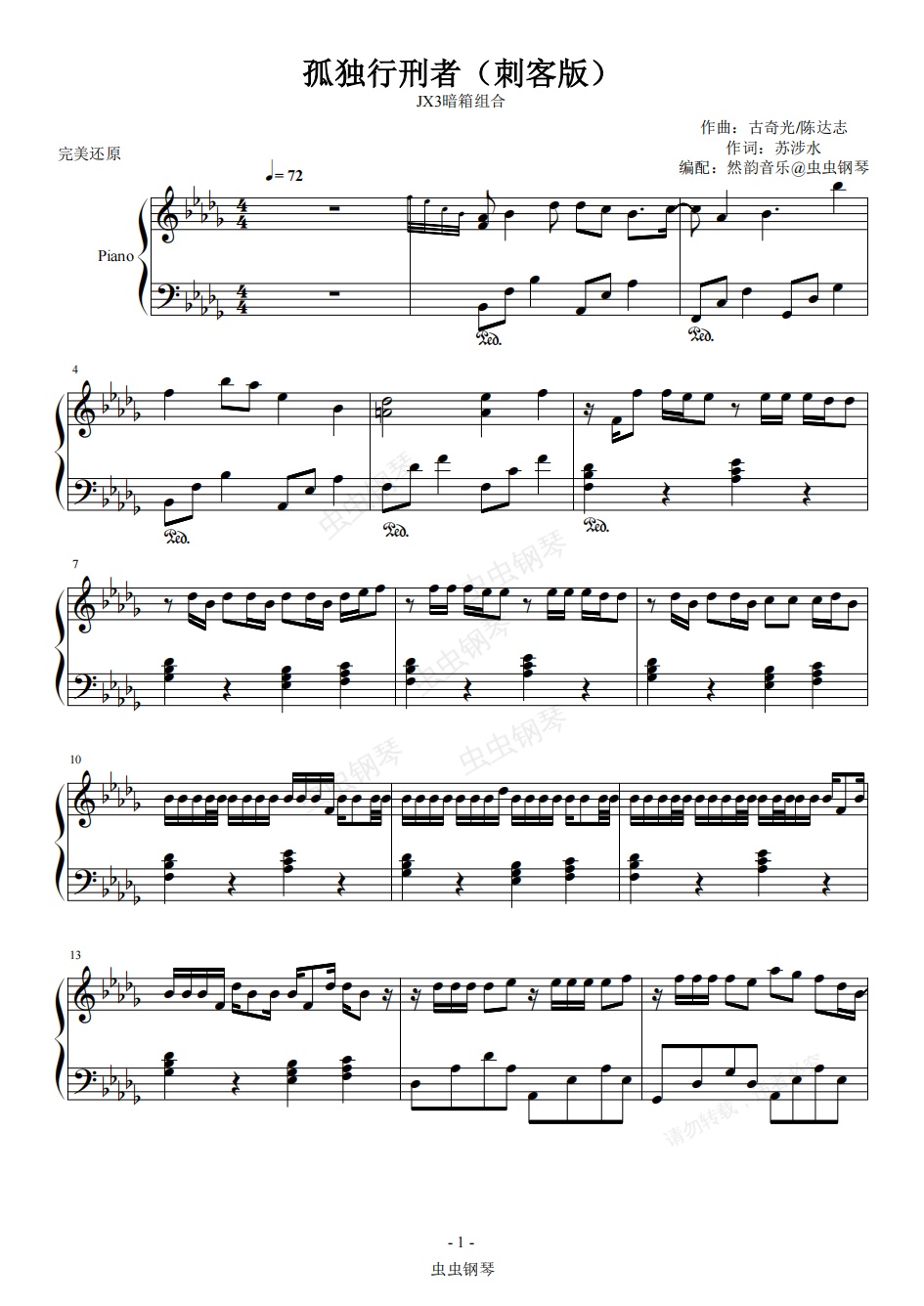 钢琴谱:【原调】孤独行刑者 (刺客版)-JX3暗箱组合 极限还原易弹版 剑网3