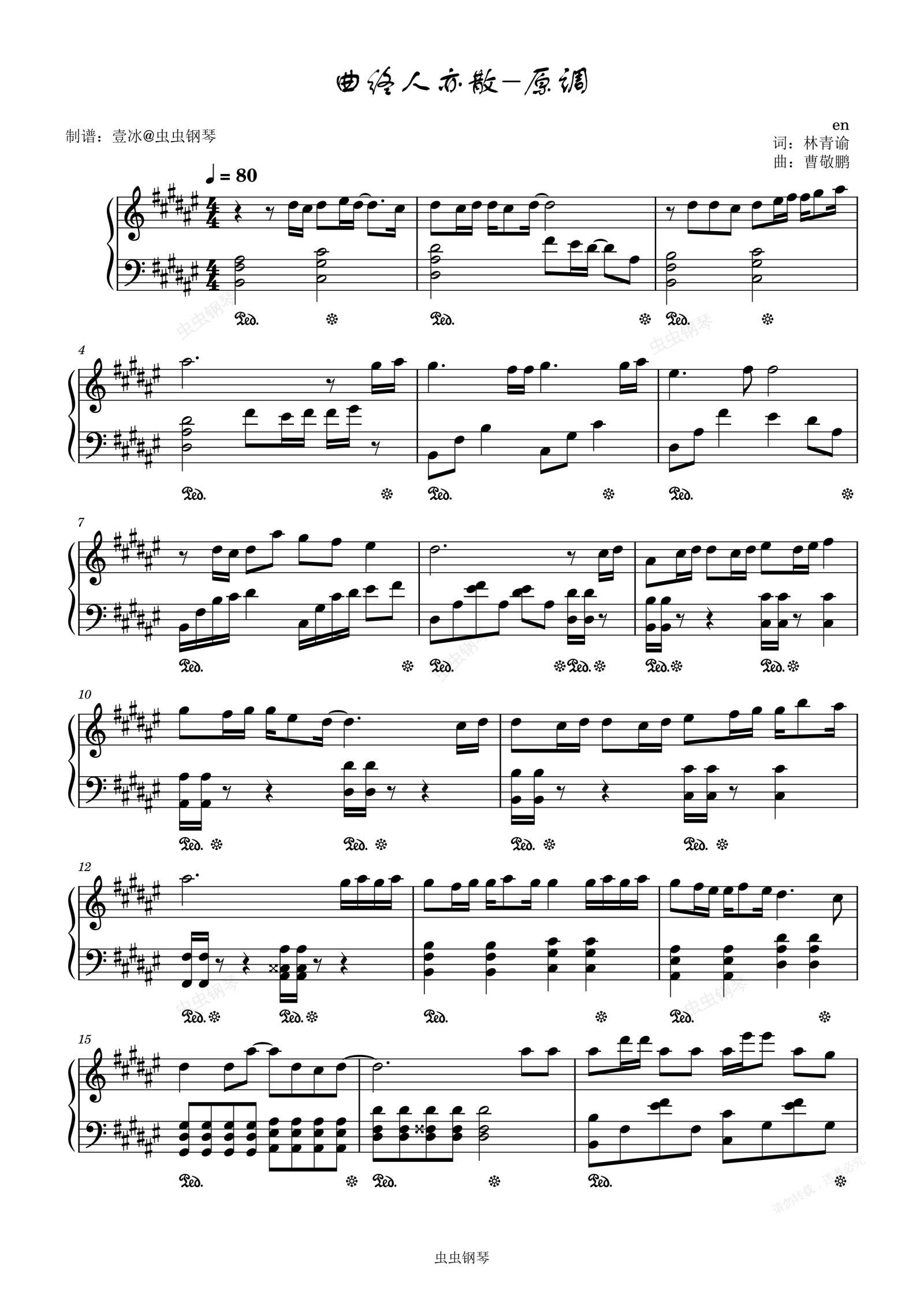 钢琴谱:曲终人亦散//en-原调版 简单易上手