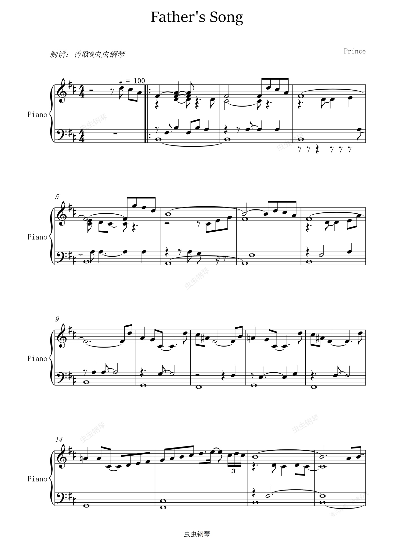 《父亲的歌》是1983 年 10 月 24 日在美国明尼苏达州昌哈森的 's Kiowa Trail Home录制的器乐。被初步纳入紫雨的早期配置中。这首歌出现在紫雨电影中,王子的角色“孩子”在房子里暴风雨寻找他的父亲,发现他在钢琴上弹奏这首歌。在录制独立曲目之前,主旋律作为主题包含在 Blue中。