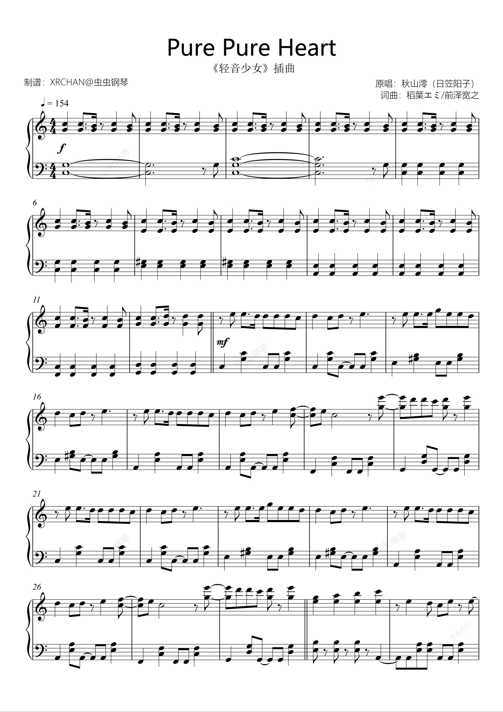 钢琴谱:Pure Pure Heart《轻音少女》插曲 初级 C调(ぴゅあぴゅあは-と)