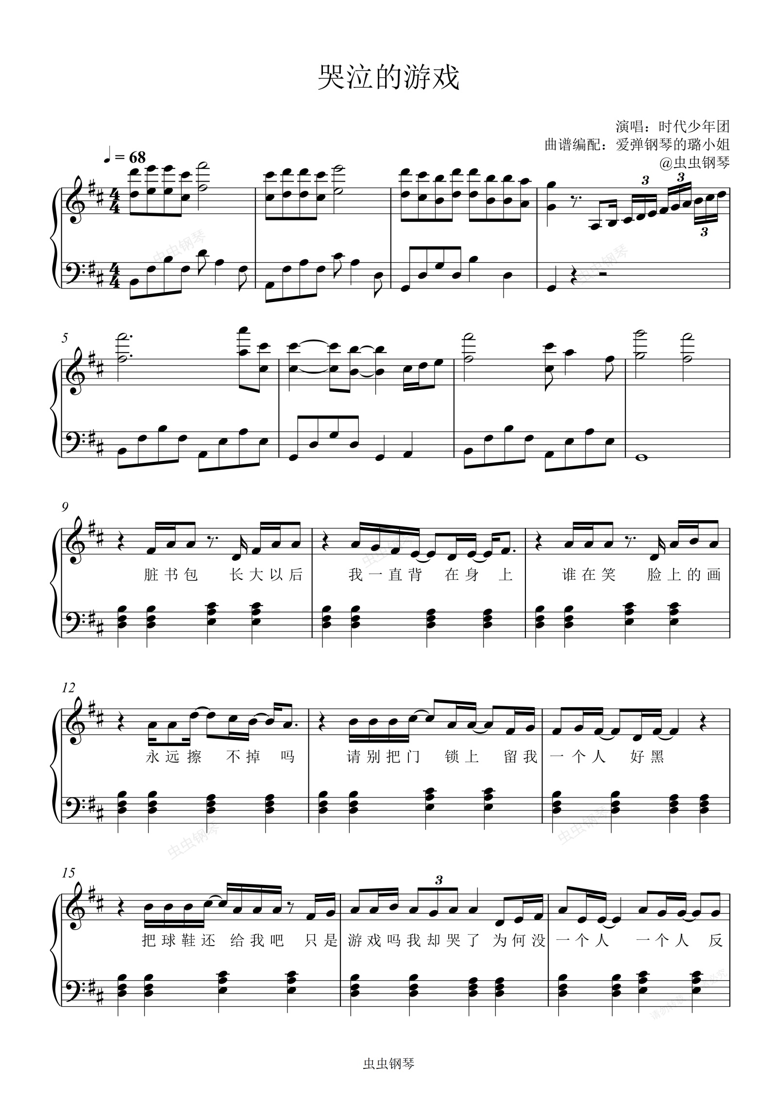 钢琴谱:哭泣的游戏 - 时代少年团 - D调简单版 - 附歌词