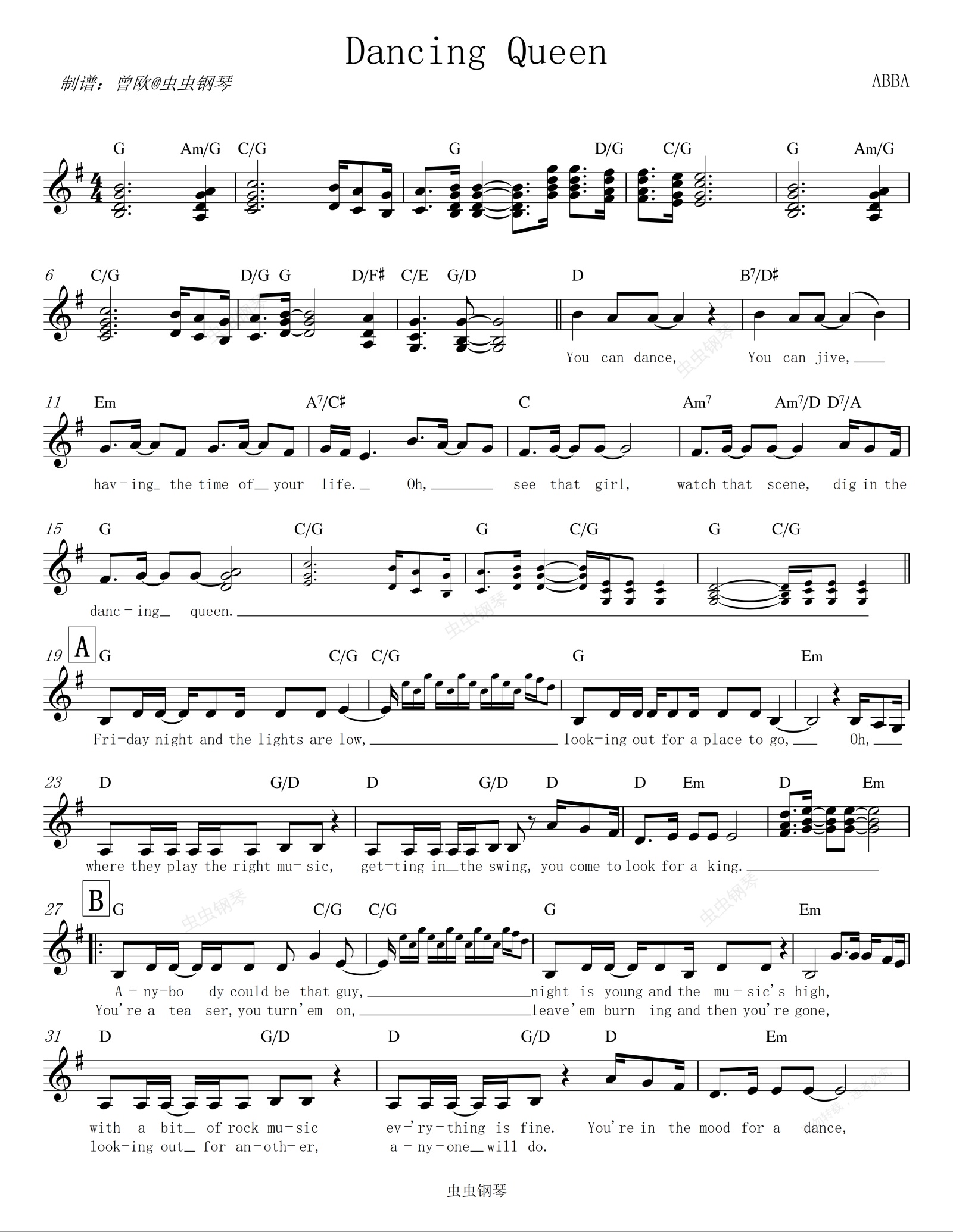 Dancing Queen (in G major) - ABBA(免费易弹版)