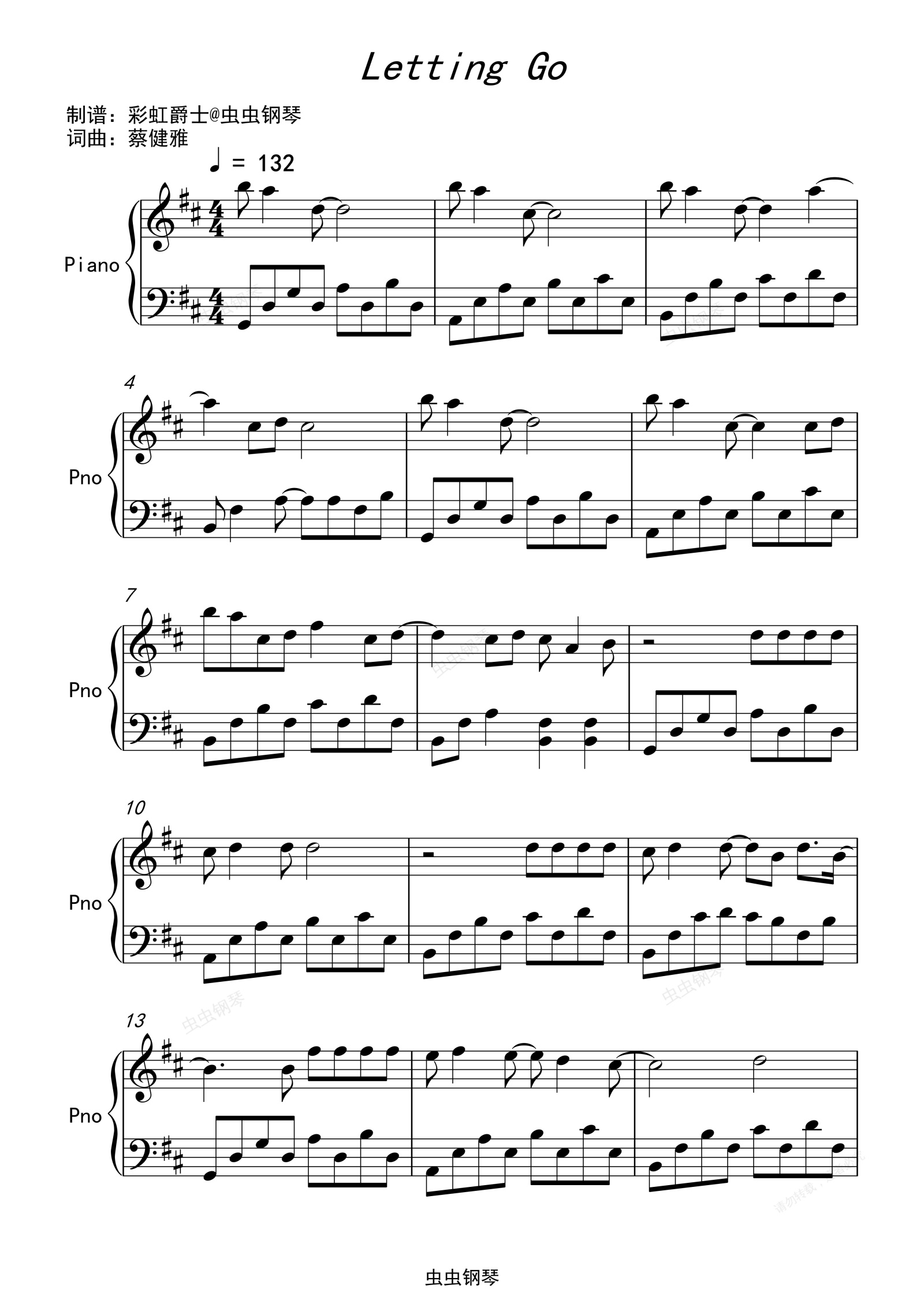 钢琴谱:Letting Go-简单版- 蔡健雅 完整版