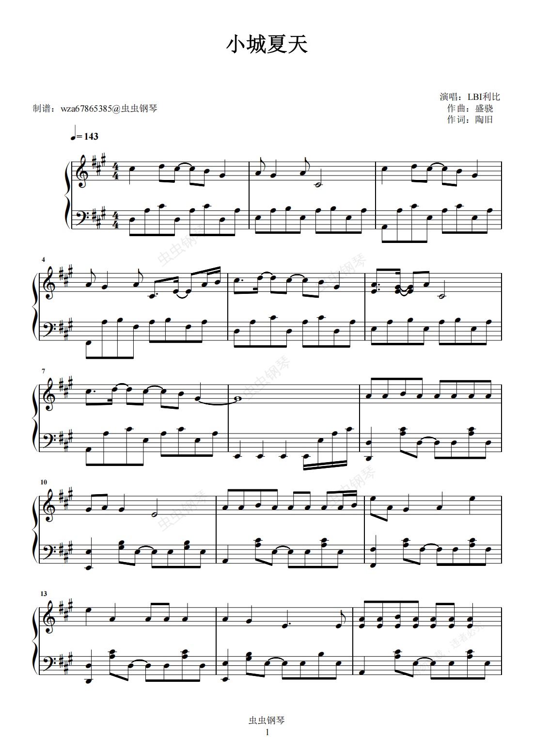 钢琴谱:小城夏天