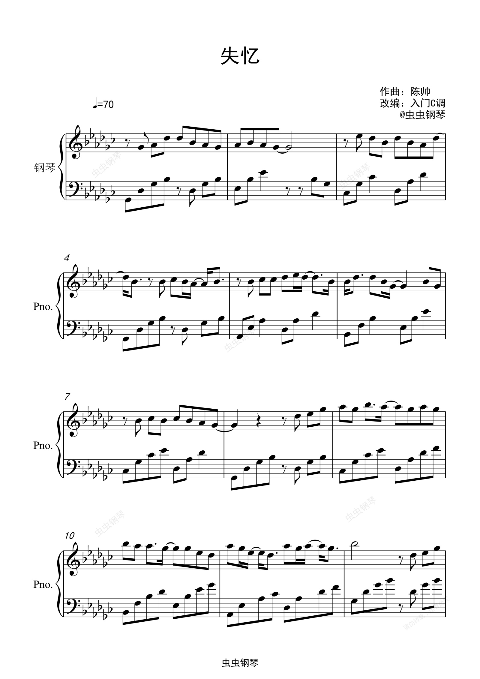 钢琴谱:《苍兰诀》插曲虞书欣《失忆》原调入门简单版