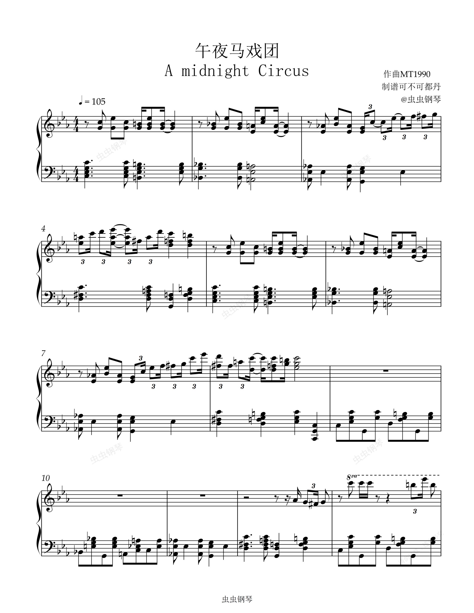 钢琴谱:MT1990午夜马戏团-A Midnight Circus完美还原版