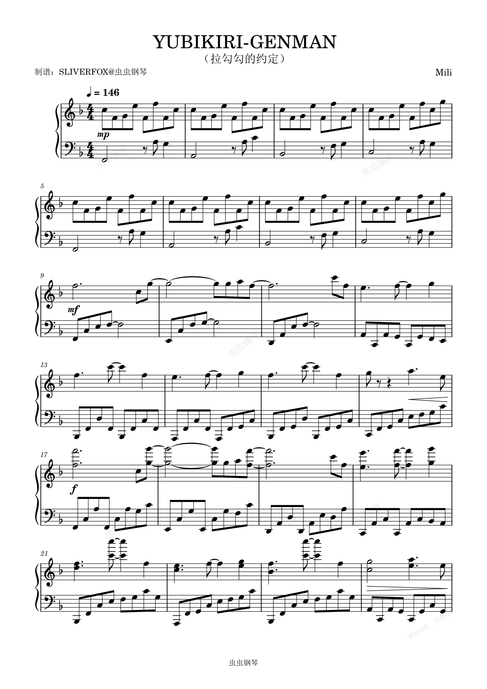 钢琴谱:《YUBIKIRI-GENMAN》音游Deemo古树旋律BGM 优美独奏