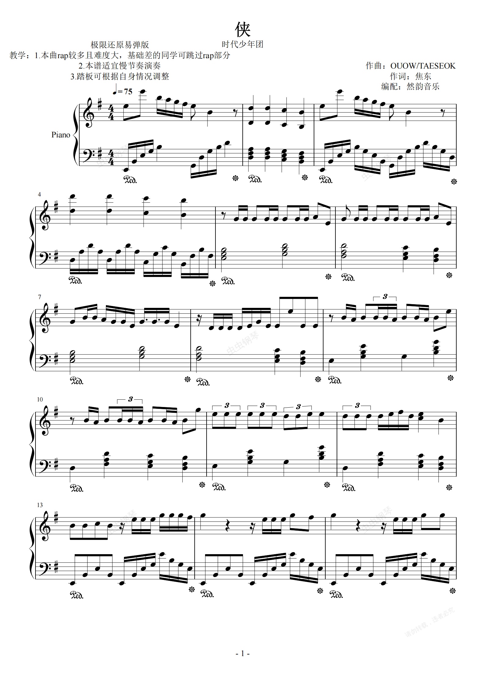 钢琴谱:【原调】侠-TNT时代少年团 极限还原易弹版 然韵音乐编配