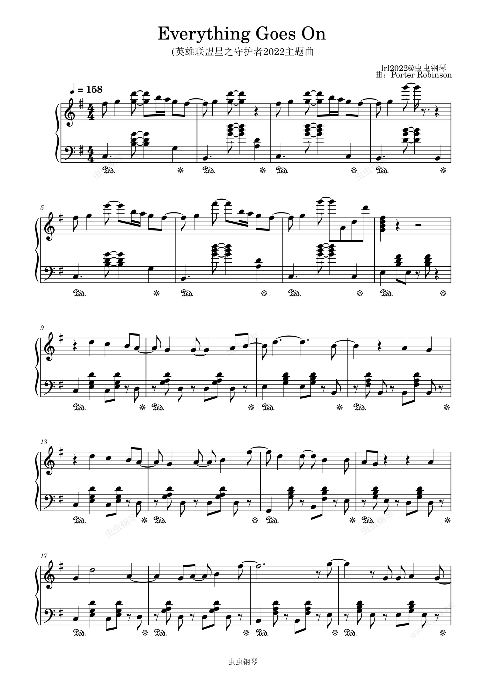 钢琴谱:Everything Goes On- (群星依旧)-英雄联盟星之守护者2022主题曲-独奏版钢琴谱