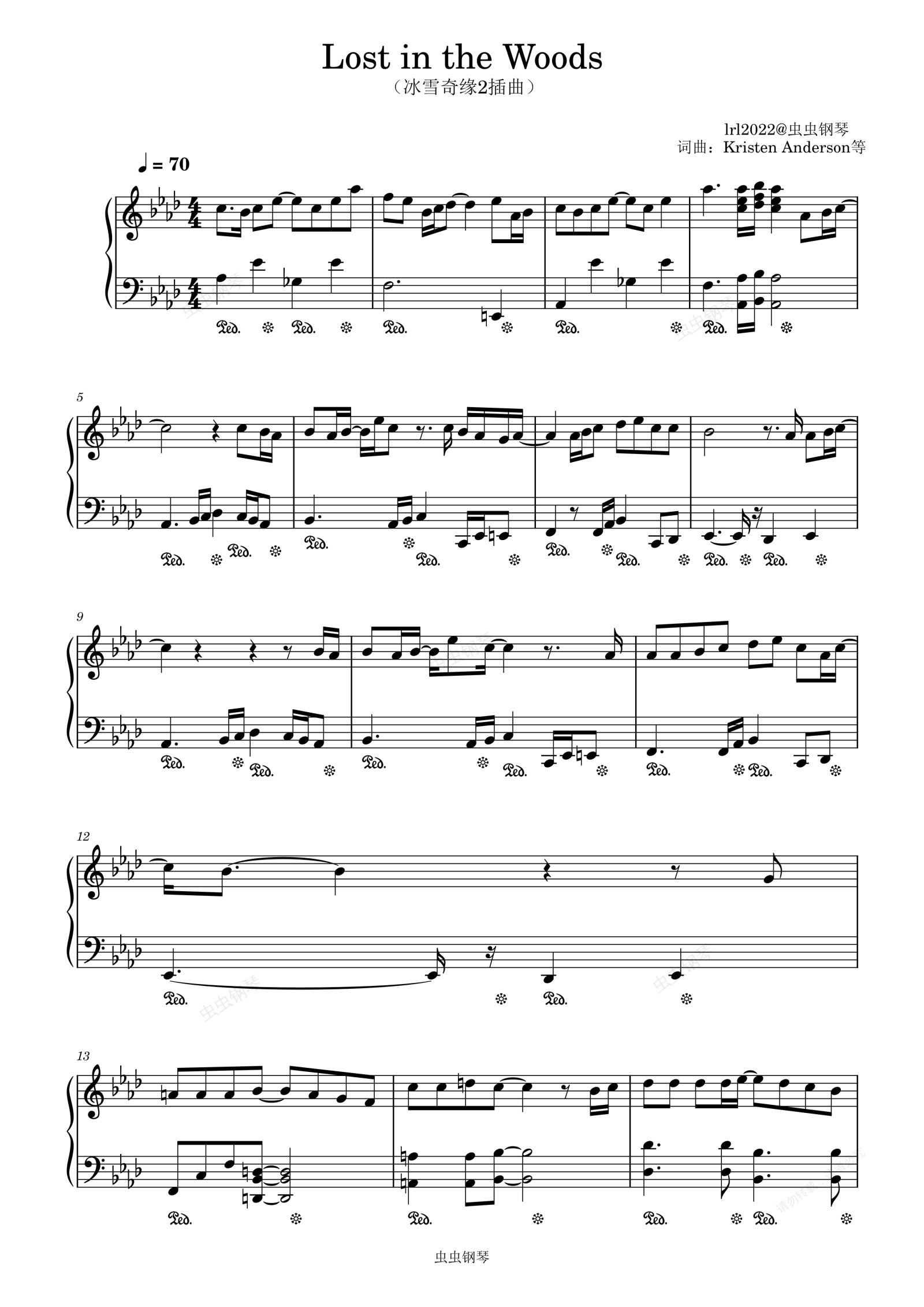 钢琴谱:Lost in the Woods-冰雪奇缘2插曲-独奏版钢琴谱