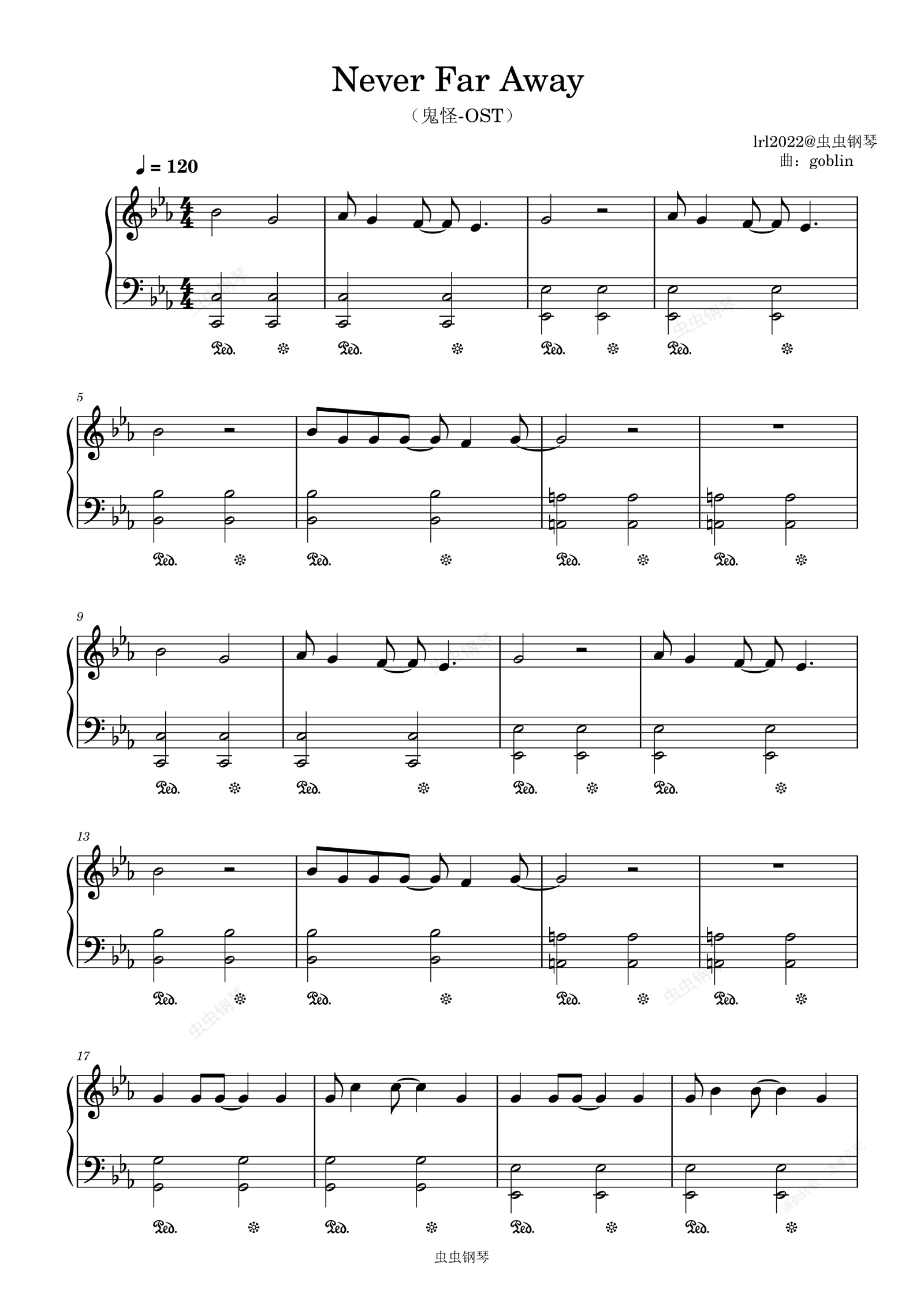 钢琴谱:Never Far Away-鬼怪-OST-原调-独奏版钢琴谱