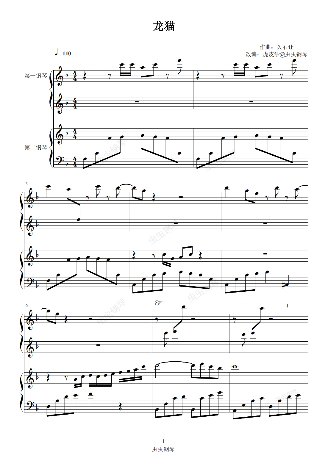 钢琴谱:邻家的龙猫 师生版四手联弹