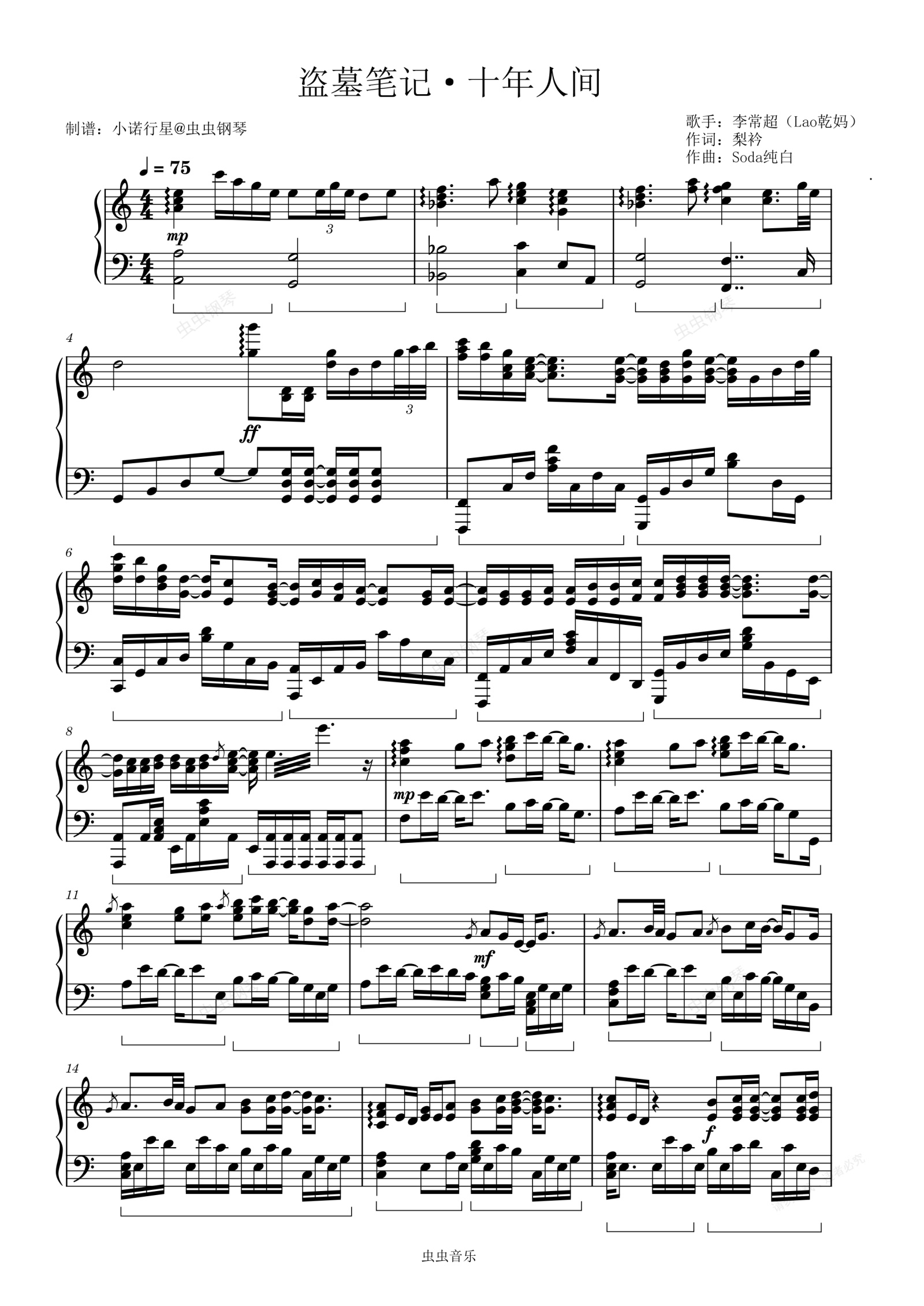 钢琴谱:盗墓笔记·十年人间-高度还原 钢琴独奏