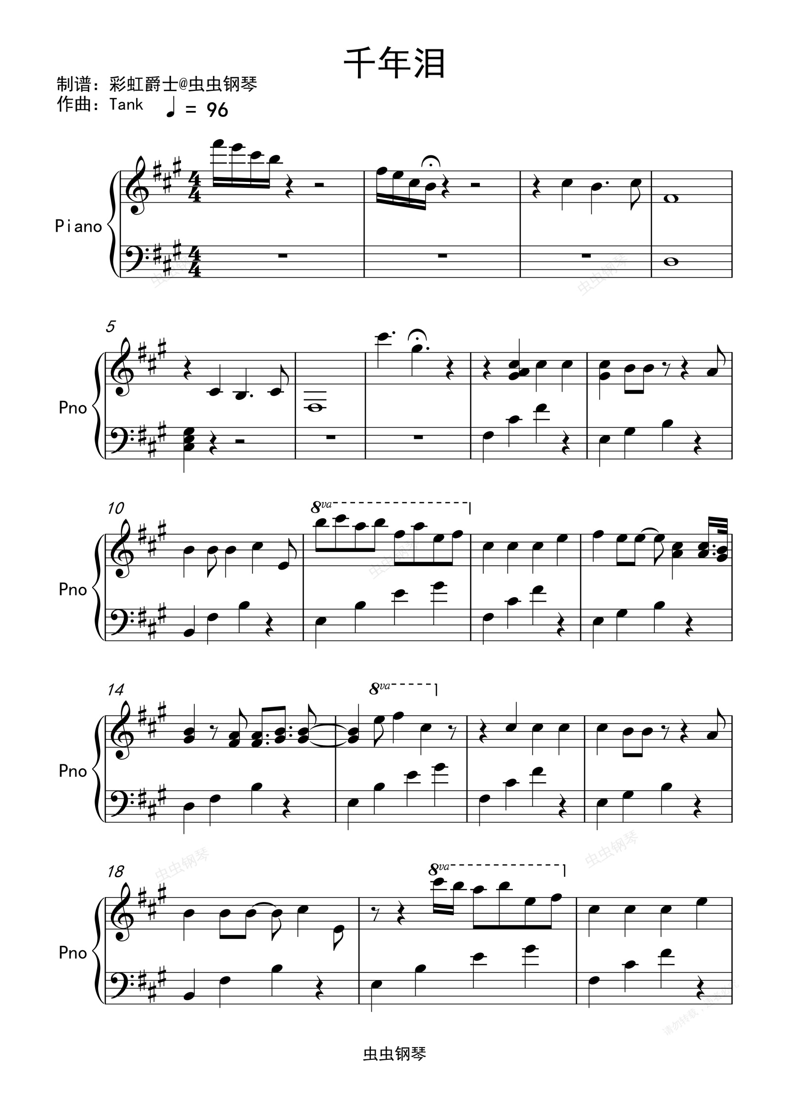钢琴谱:千年泪-天外飞仙ED-经典古风 钢琴谱 完整版 Tank