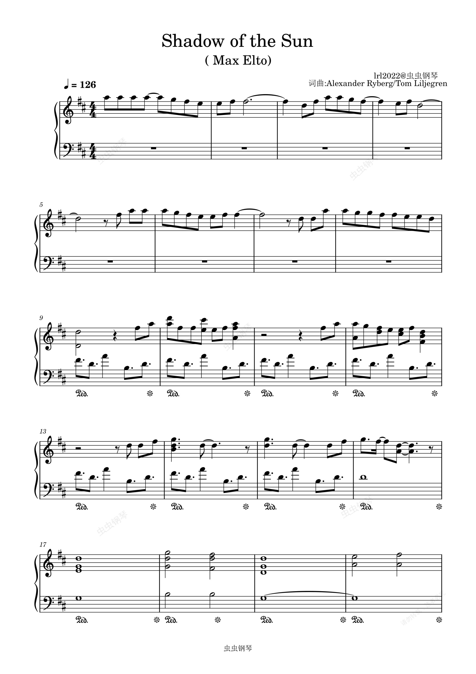 钢琴谱:Shadow Of The Sun-(太阳的影子)- Max Elto-独奏钢琴谱