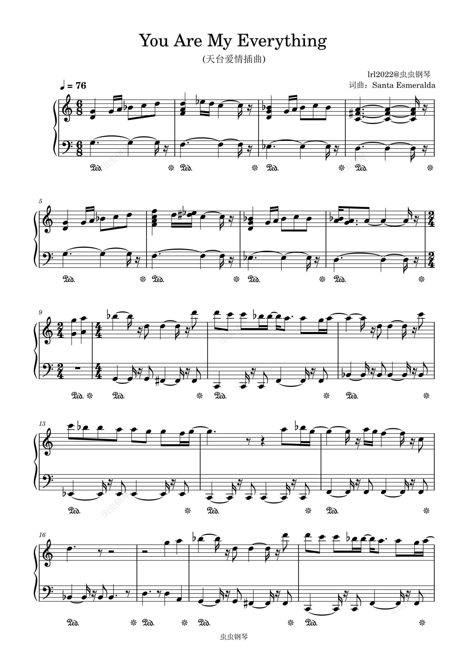 钢琴谱:You Are My Everything(你是我的一切)-《天台爱情》插曲-独奏钢琴谱-Santa Esmeralda