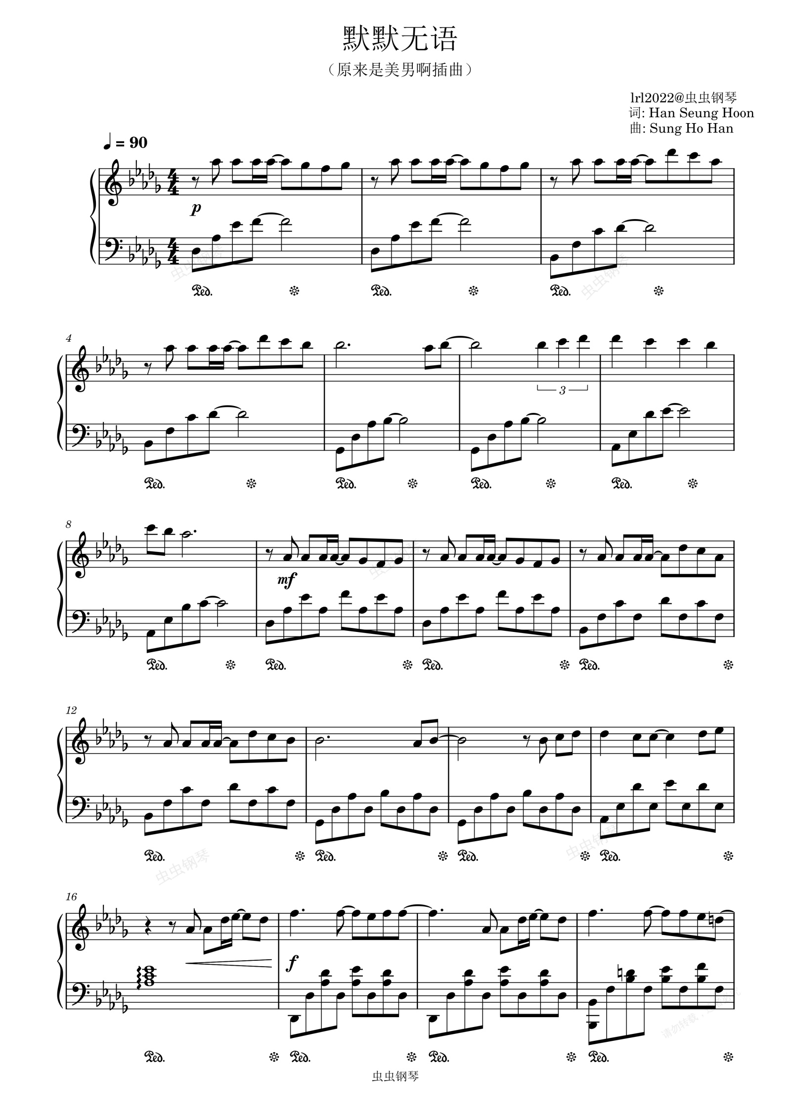 钢琴谱:默默无语/말도 없이 -原来是美男啊-插曲-独奏钢琴谱-朴信惠