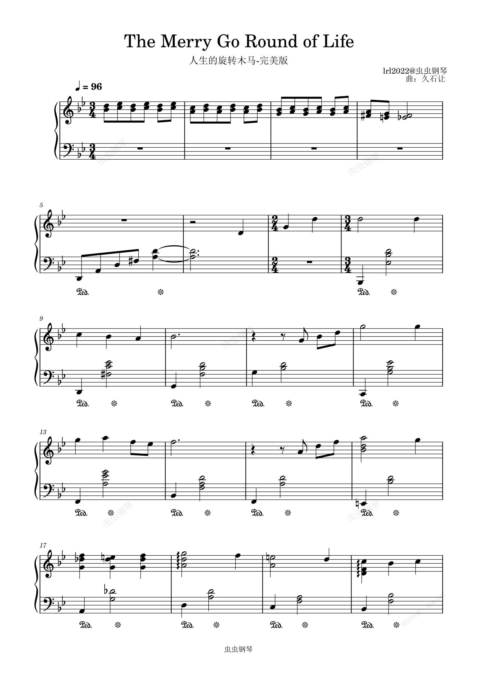 钢琴谱:人生的旋转木马-完美版-人生のメリーゴーランド-独奏钢琴谱-《哈尔的移动城堡》主题配乐