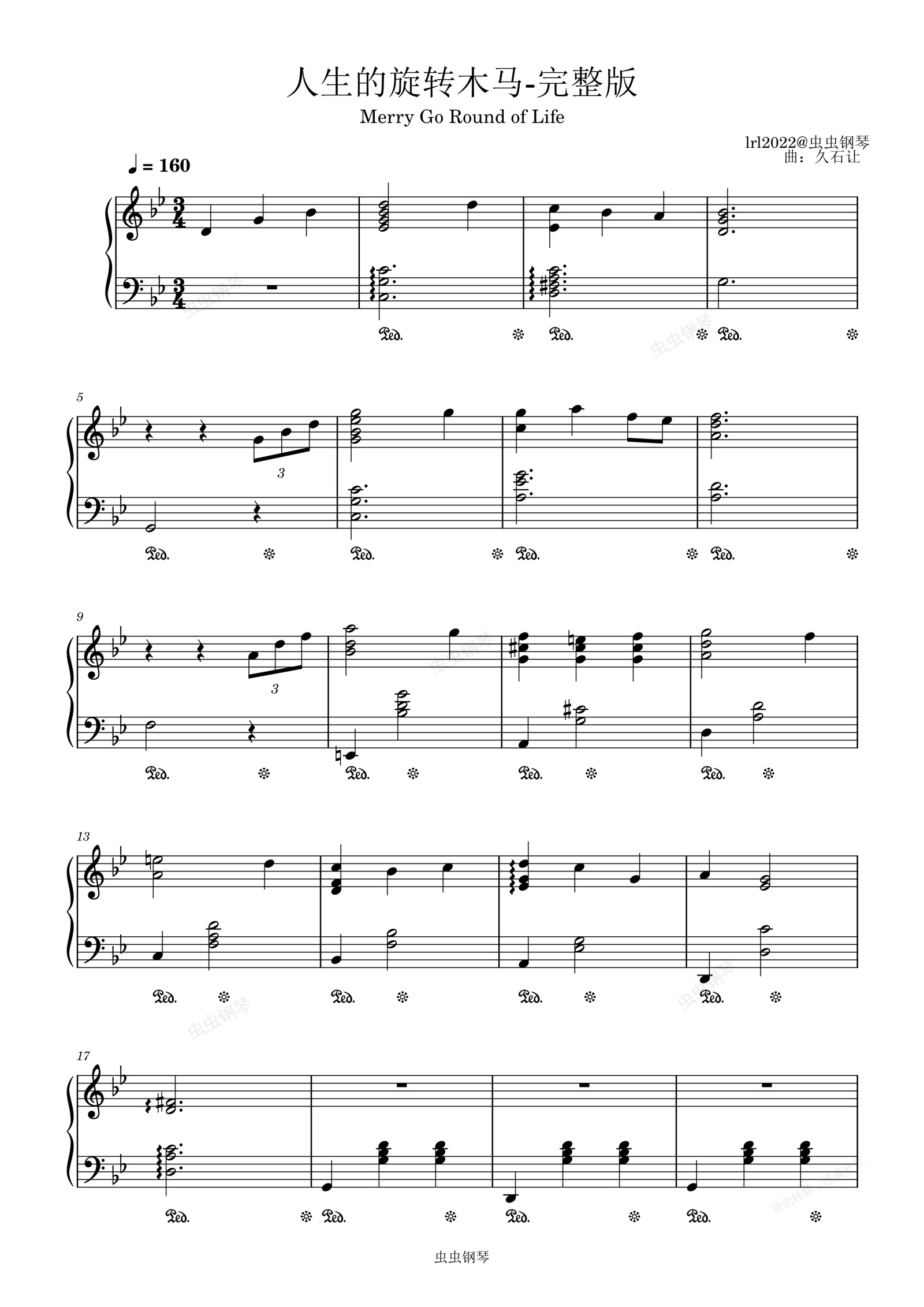 钢琴谱:人生的旋转木马-完整版-人生のメリーゴーランド-独奏钢琴谱-The Merry Go Round of Life-《哈尔的移动城堡》主题配乐