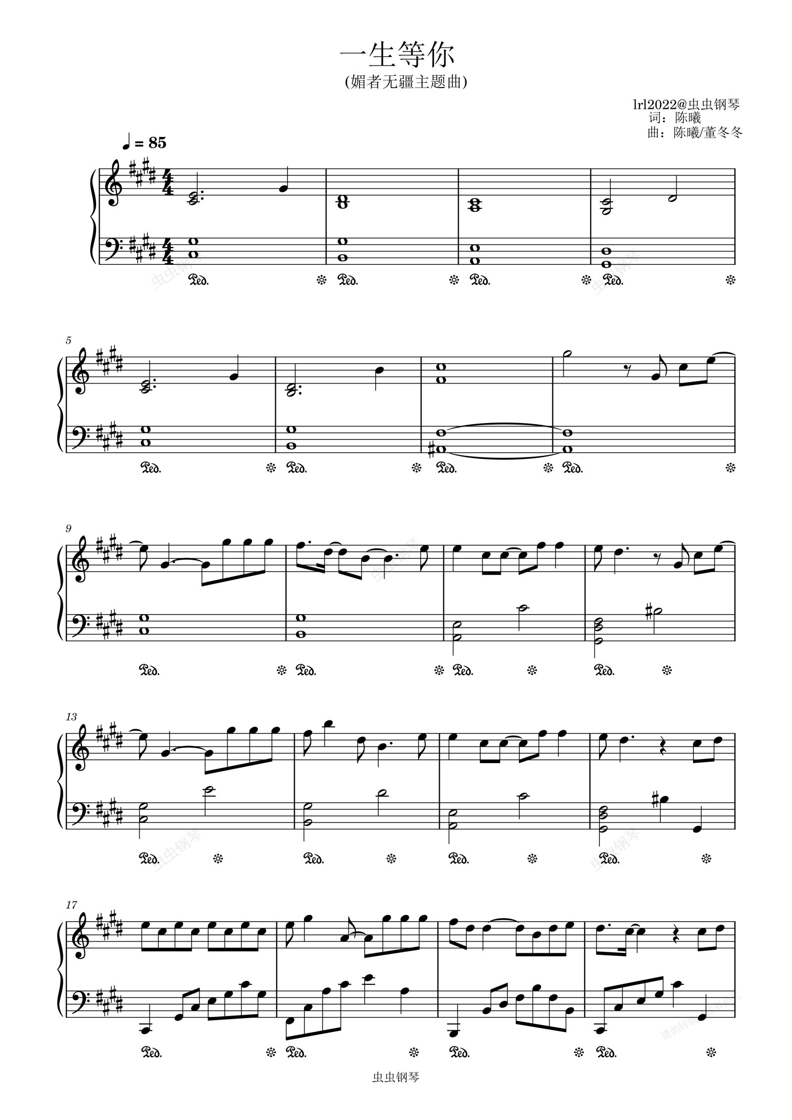 钢琴谱:一生等你-媚者无疆主题曲-独奏钢琴谱