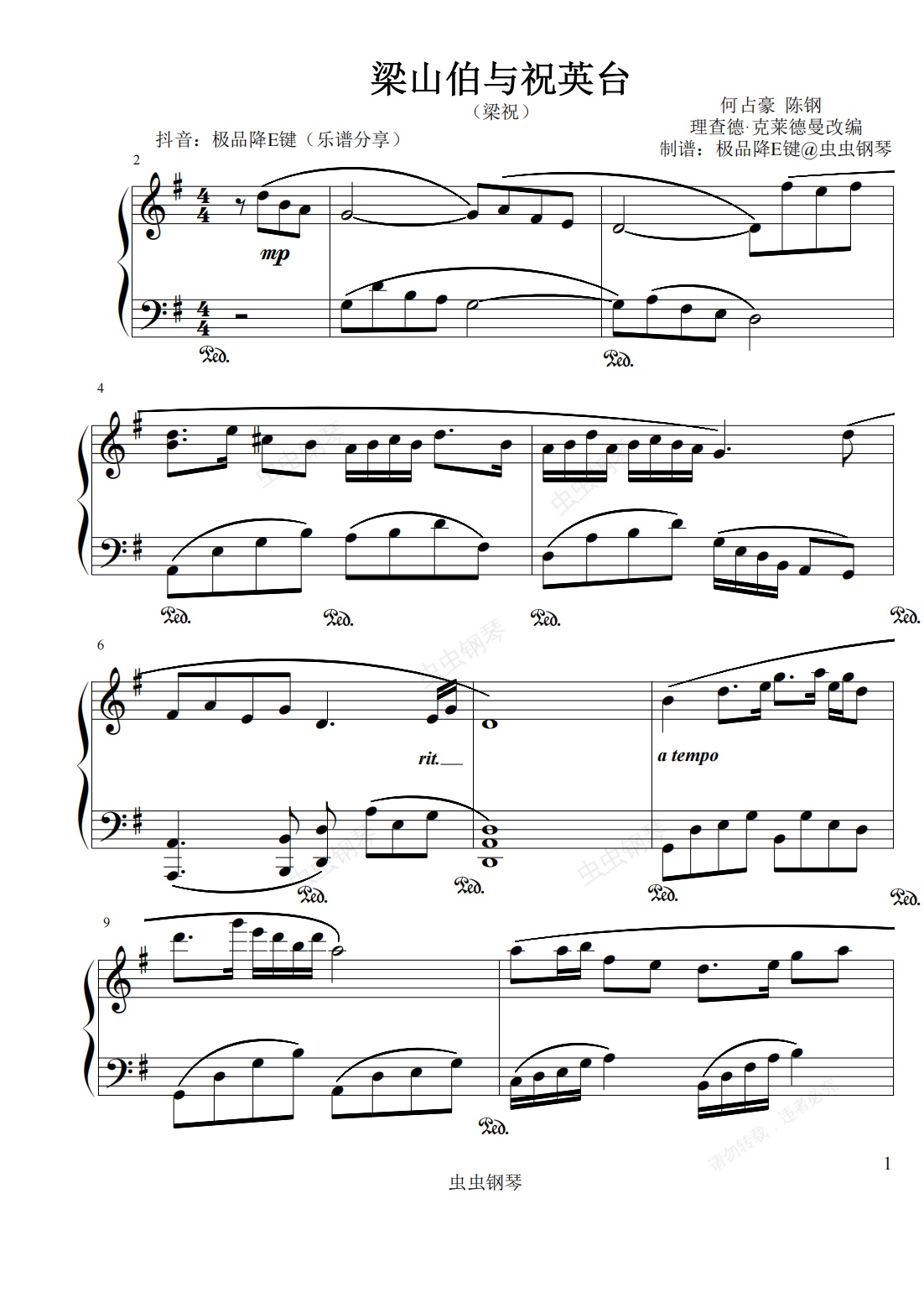 钢琴谱:梁祝(理查德版2022精心制谱)