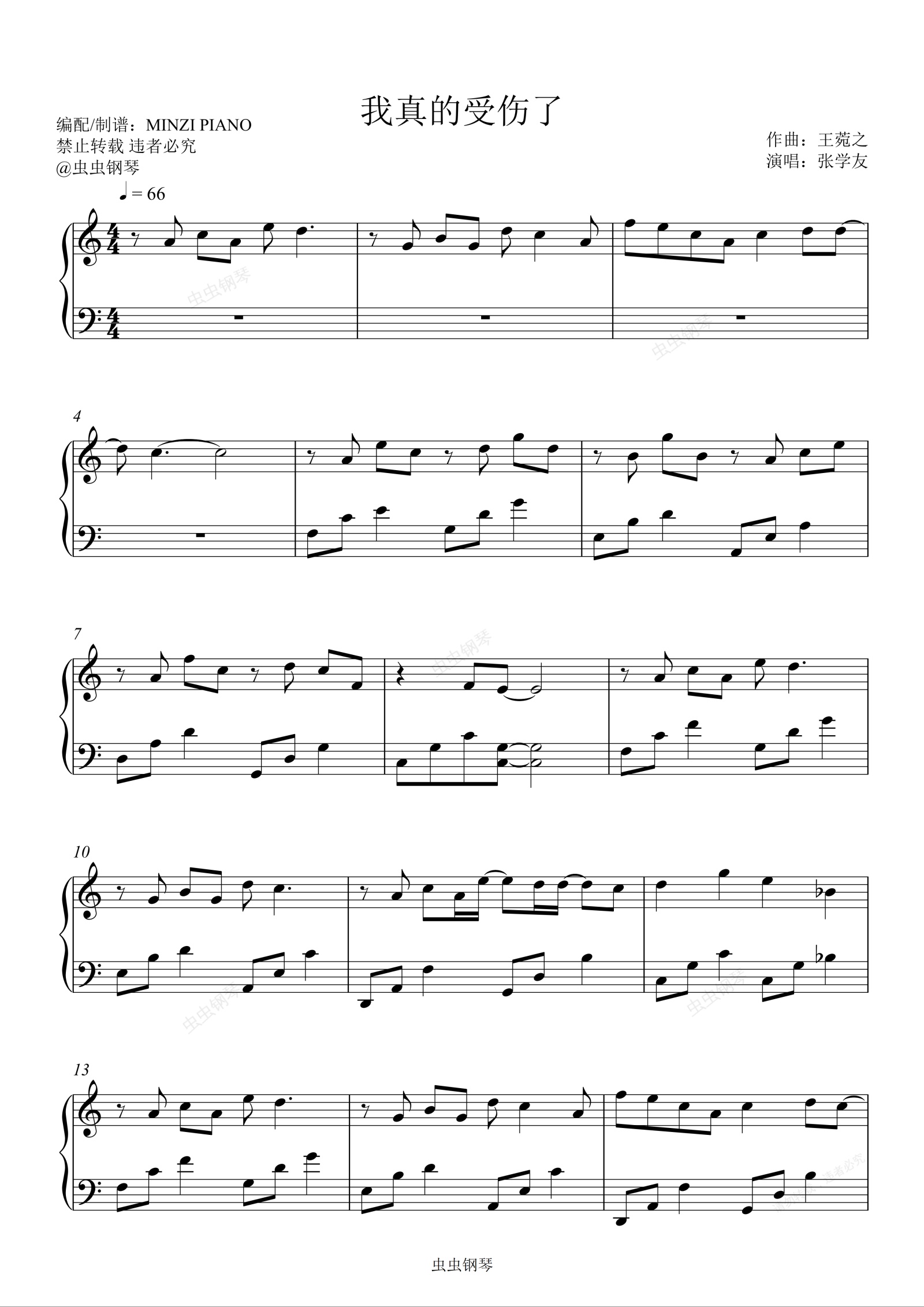 钢琴谱:张学友《我真的受伤了》好听易弹