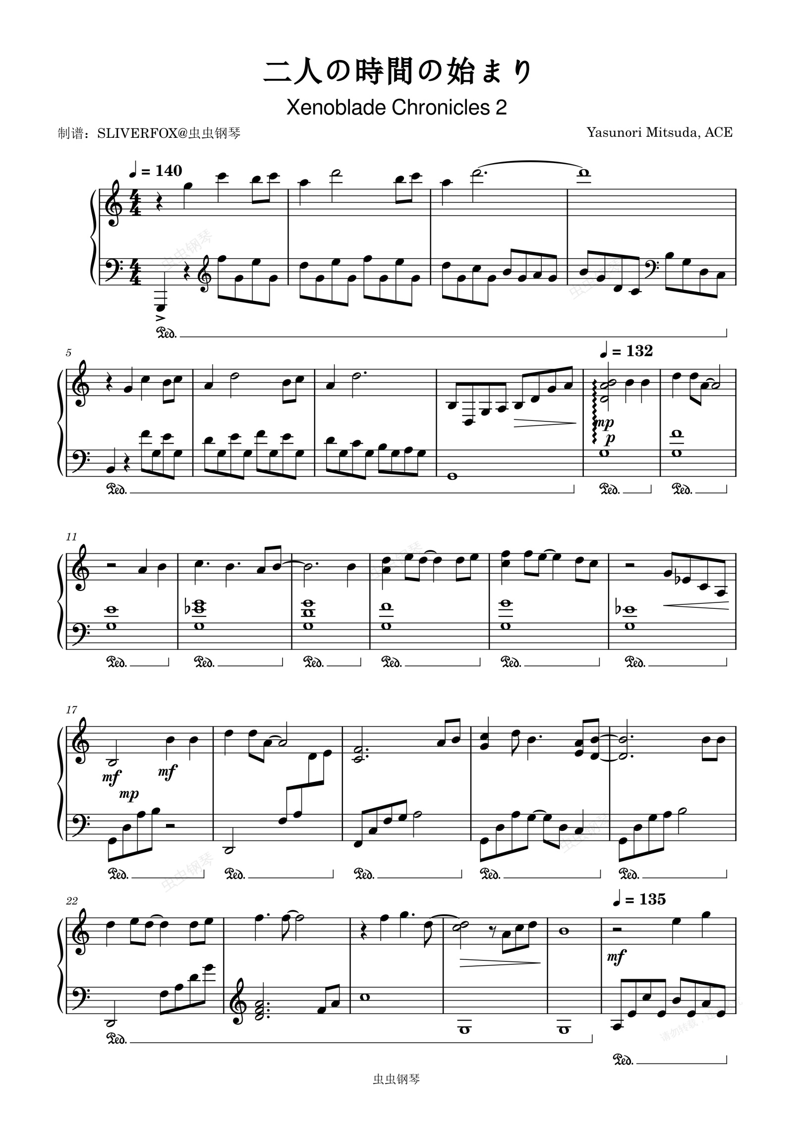 钢琴谱:《二人の時間の始まり》异度之刃2插曲 独奏