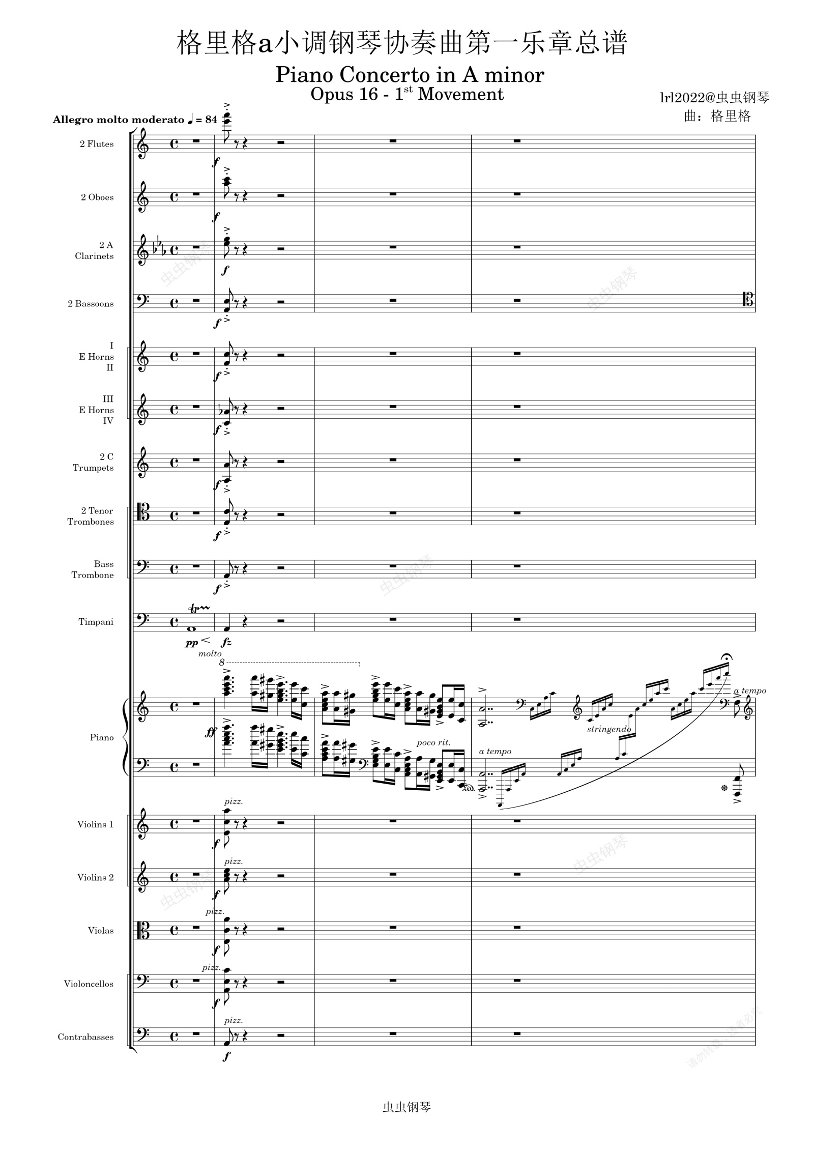 钢琴谱:格里格a小调钢琴协奏曲第一乐章-总谱-完整原谱-乐队+钢琴-Op.16-Edvard Grieg