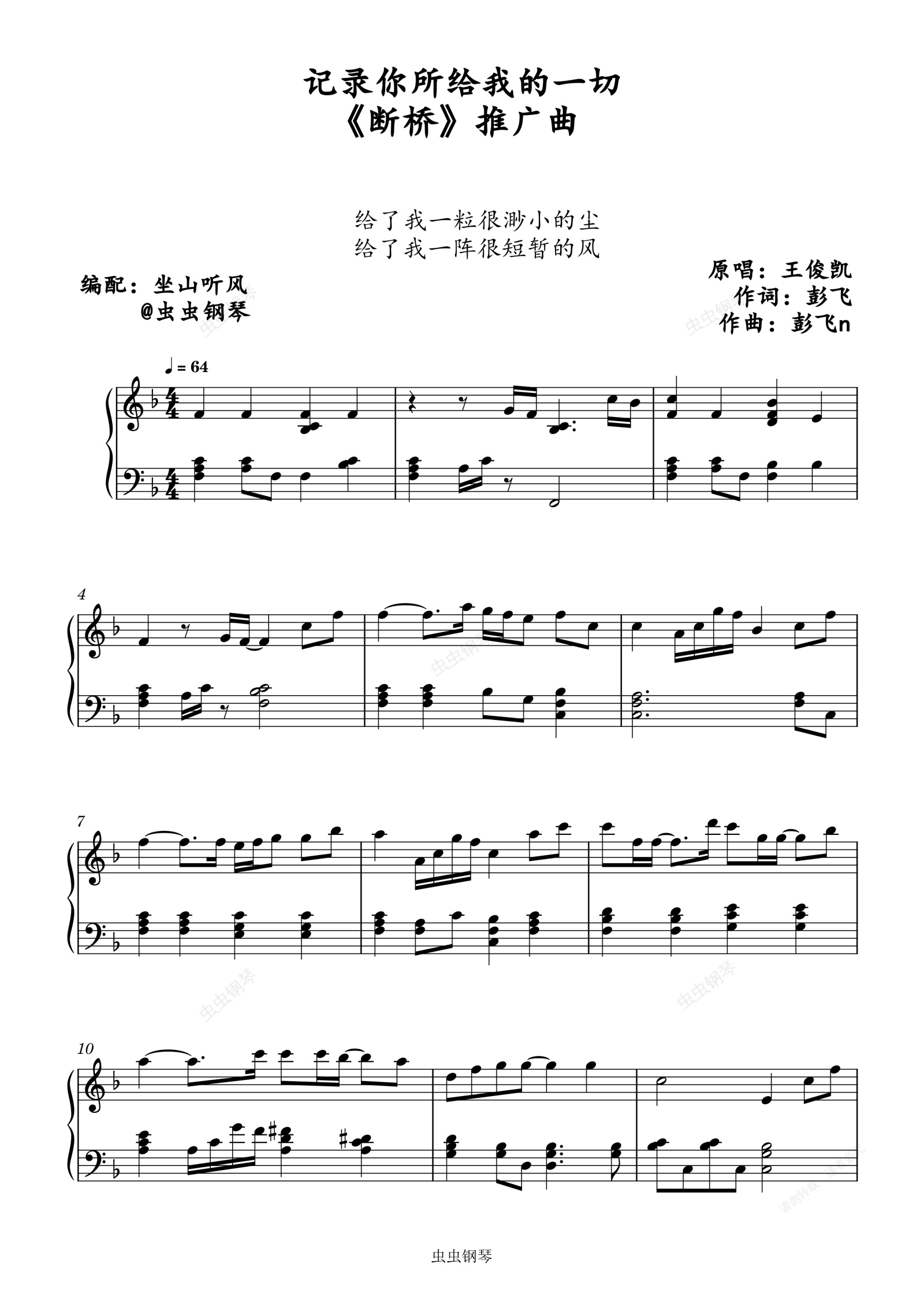钢琴谱:记录你所给我的一切 ——《断桥》推广曲【王俊凯】